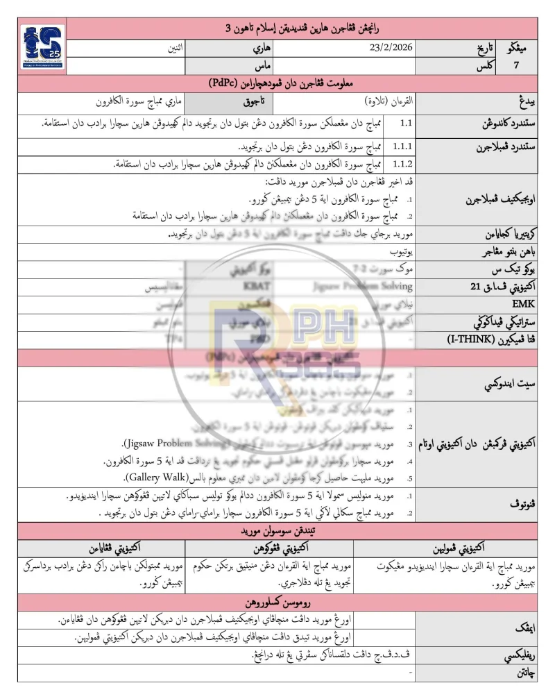 - Merangkumi semua komponen PAI: Al-Quran (Surah Al-Kafirun, tilawah Al-Maidah), Jawi (imbuhan awalan), Ulum (Asma Allah Al-Alim & Al-Hakim, bersuci dari hadath), dan Tasmik