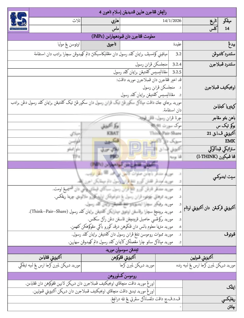 Set lengkap Rancangan Pengajaran Harian (RPH) dan Rancangan Pengajaran Tahunan (RPT) Pendidikan Islam Tahun 4 KSSR untuk sesi 2026. Disusun mengikut 43 minggu Takwim Persekolahan 2026 dengan pembahagian Kumpulan A dan B.