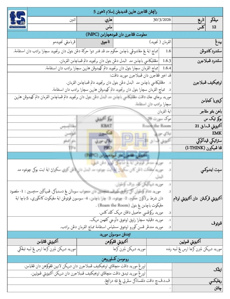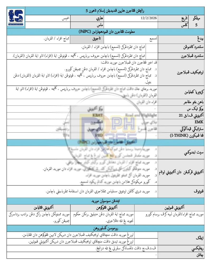 - RPH & RPT lengkap untuk 4 komponen: Al-Quran (Surah Al-Furqan & As-Syu'ara), Jawi, Ulum dan Tasmik
