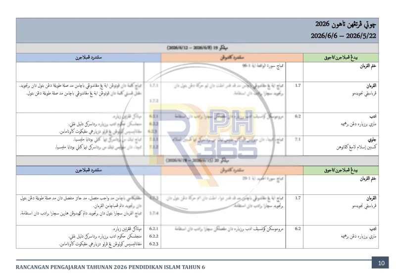 RPH & RPT 2026 Pendidikan Islam Tahun 6 SK by RPH365