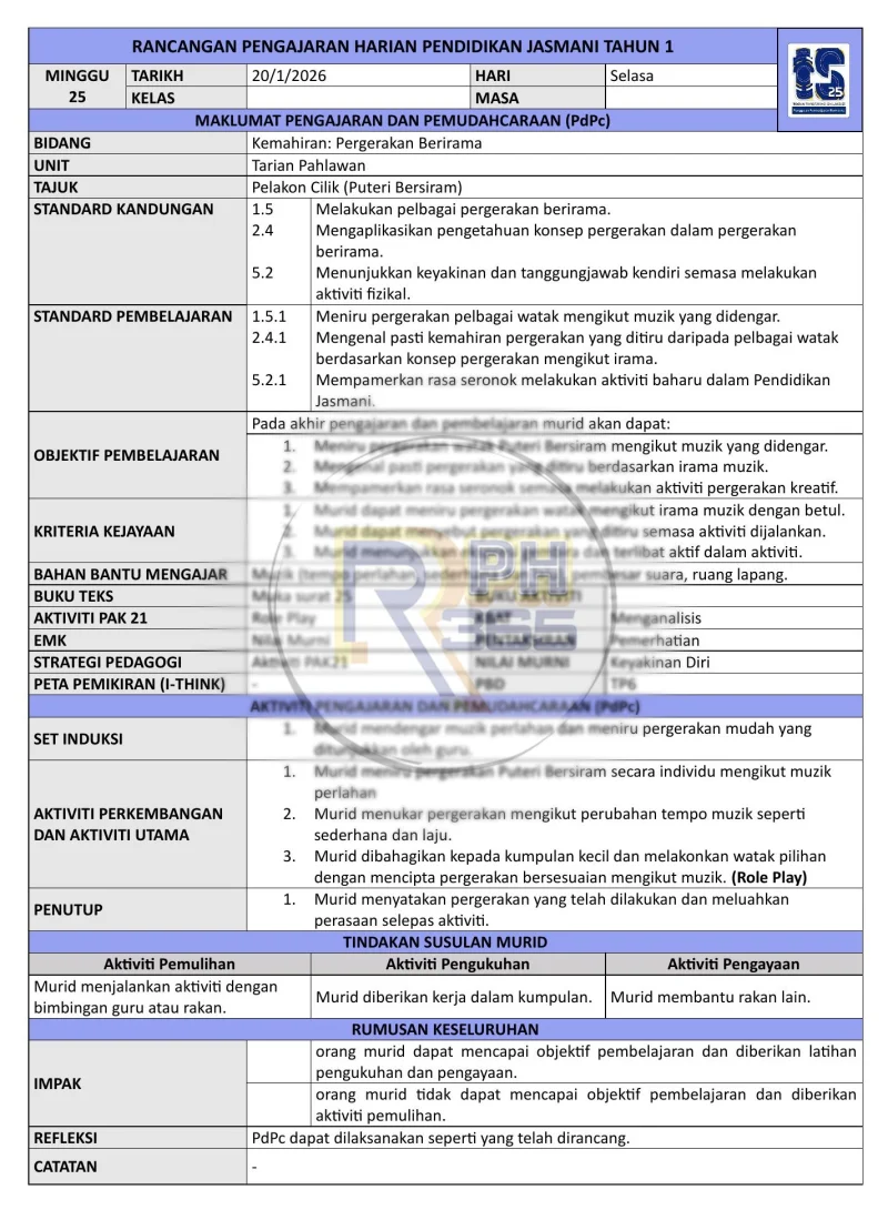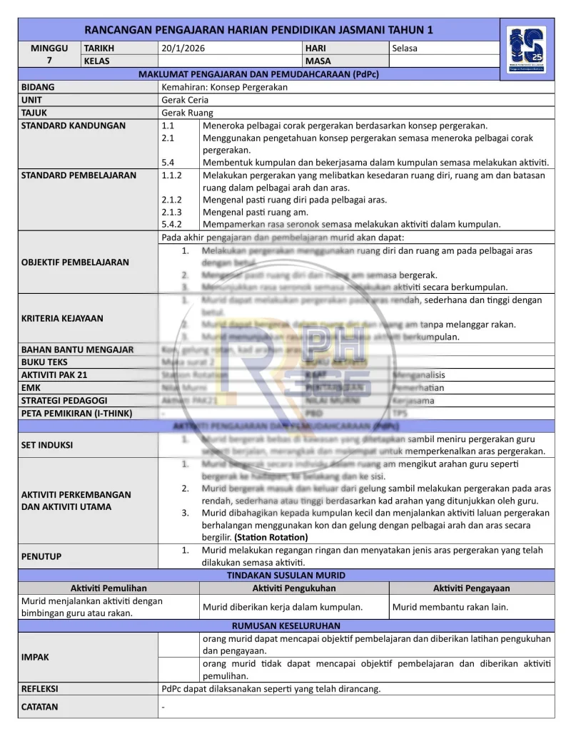 Dapatkan RPH yang lengkap dan mudah disesuaikan untuk memastikan pengajaran Pendidikan Jasmani yang berkesan sepanjang tahun 2026!