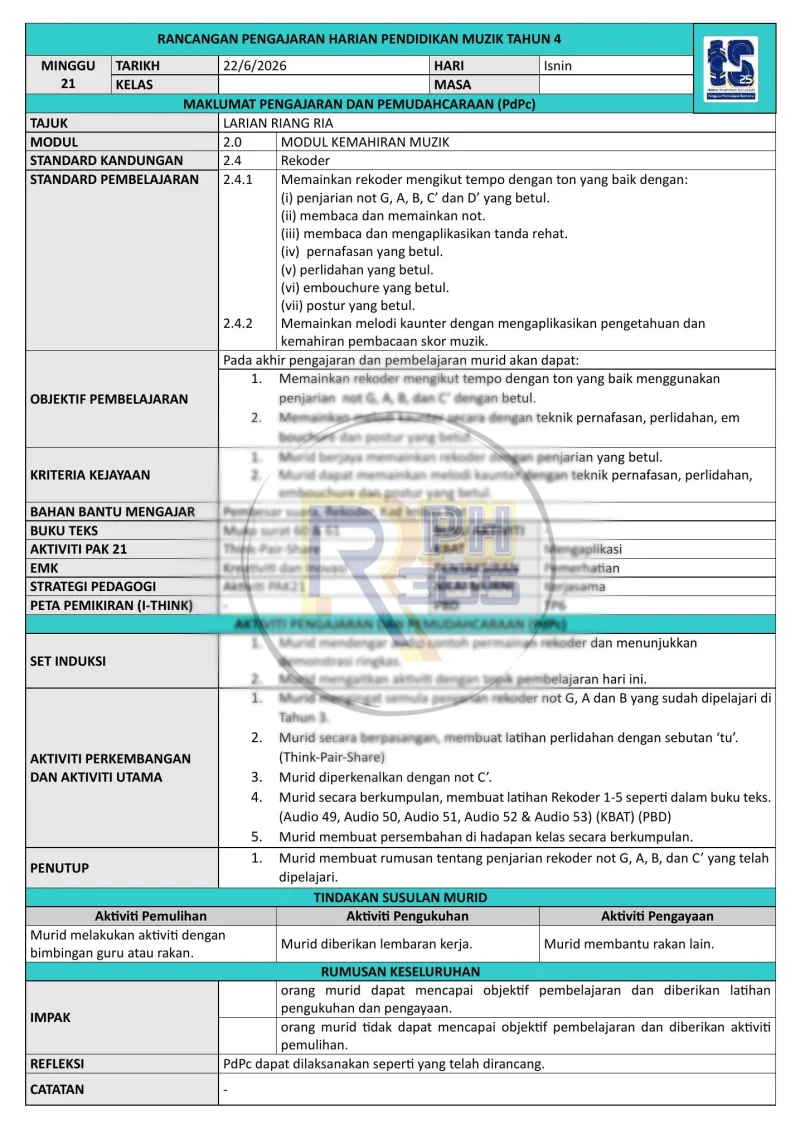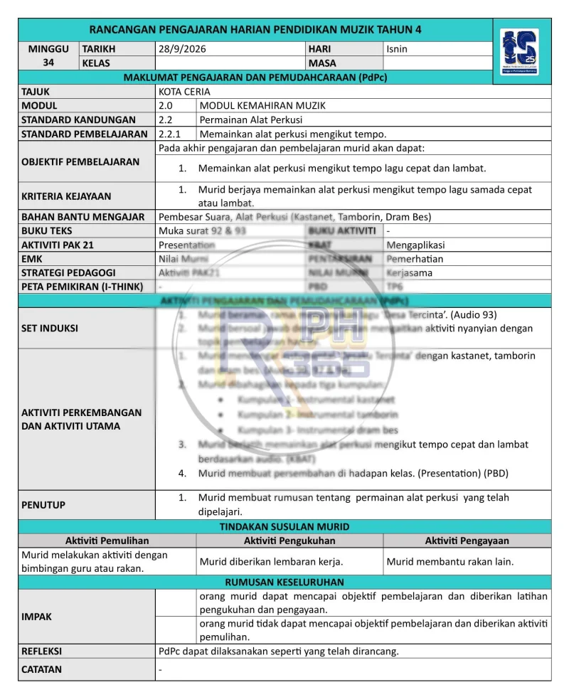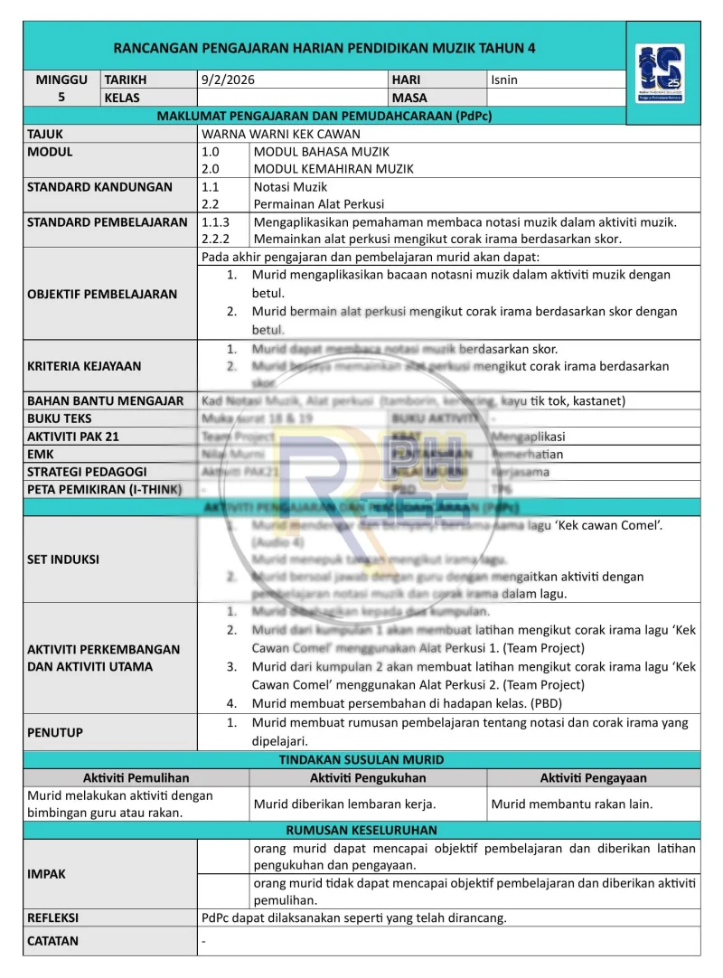 RPH 2026 Pendidikan Muzik SK Tahun 4 by RPH365