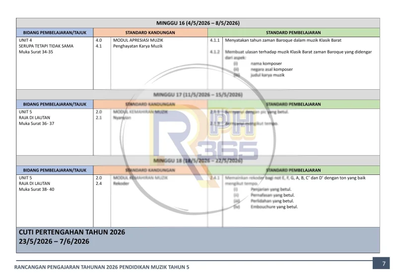 RPH 2026 Pendidikan Muzik SK Tahun 5 by RPH365