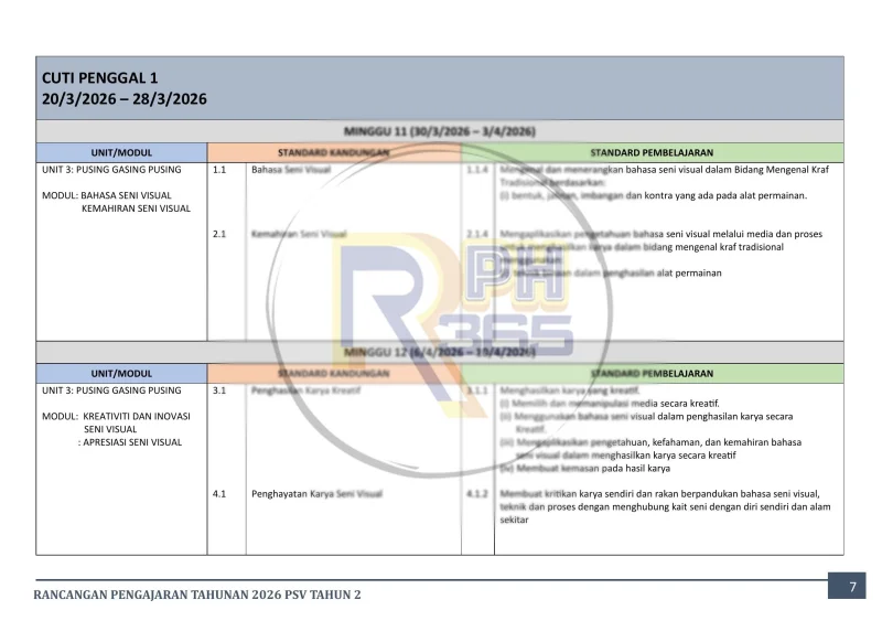 RPH & RPT 2026 Pendidikan Seni Visual Tahun 2 SK by RPH365