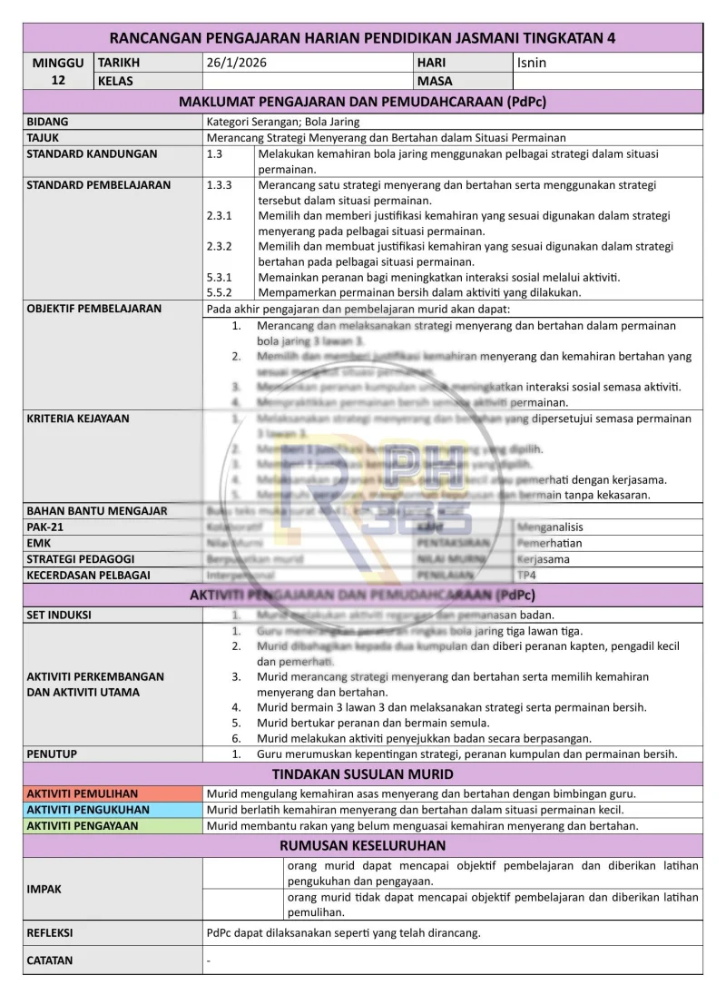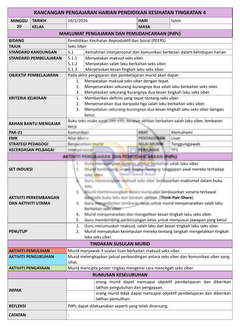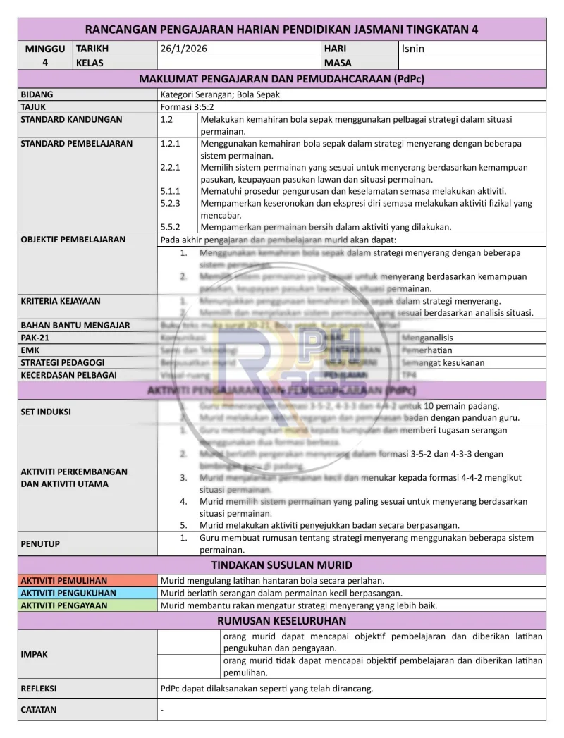 RPH & RPT 2026 PJPK Tingkatan 4 by RPH365