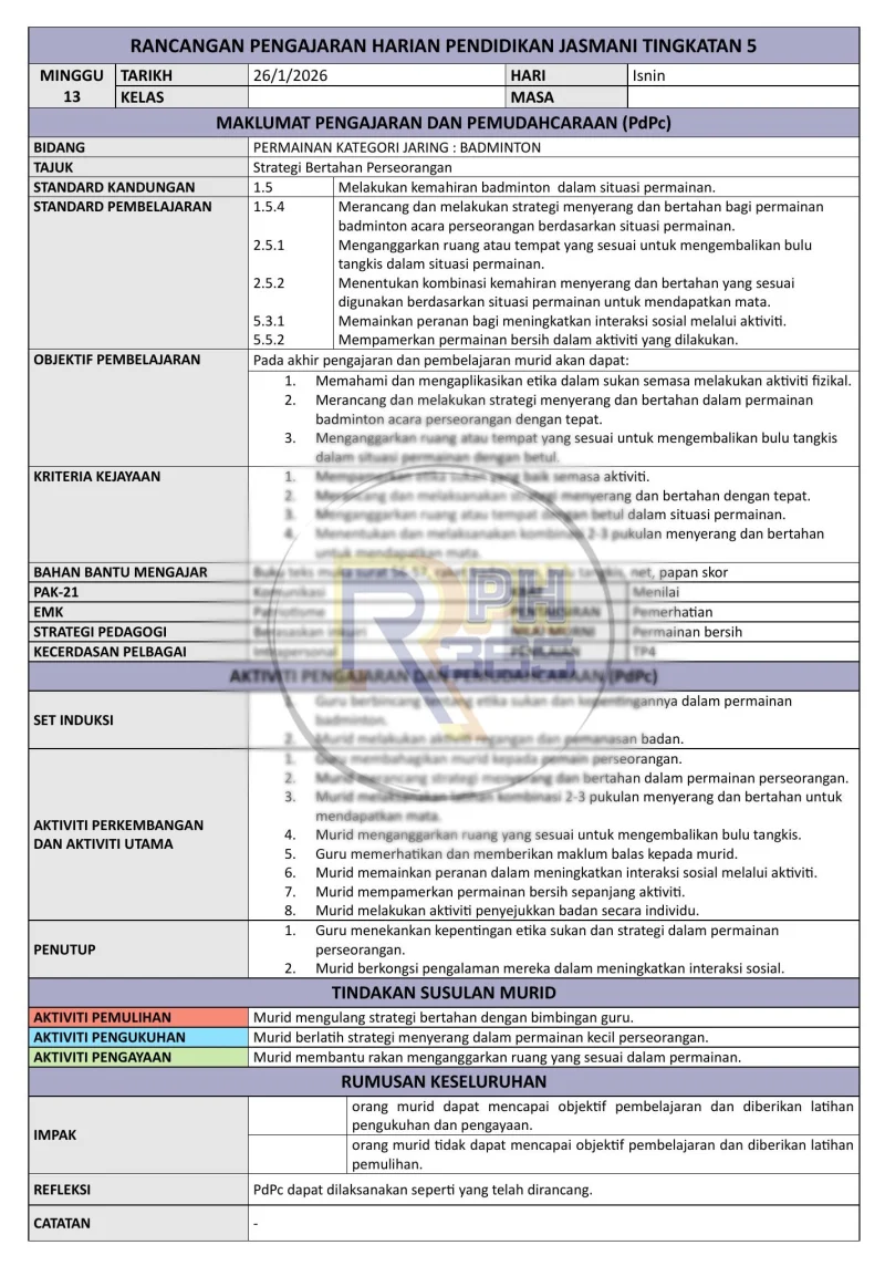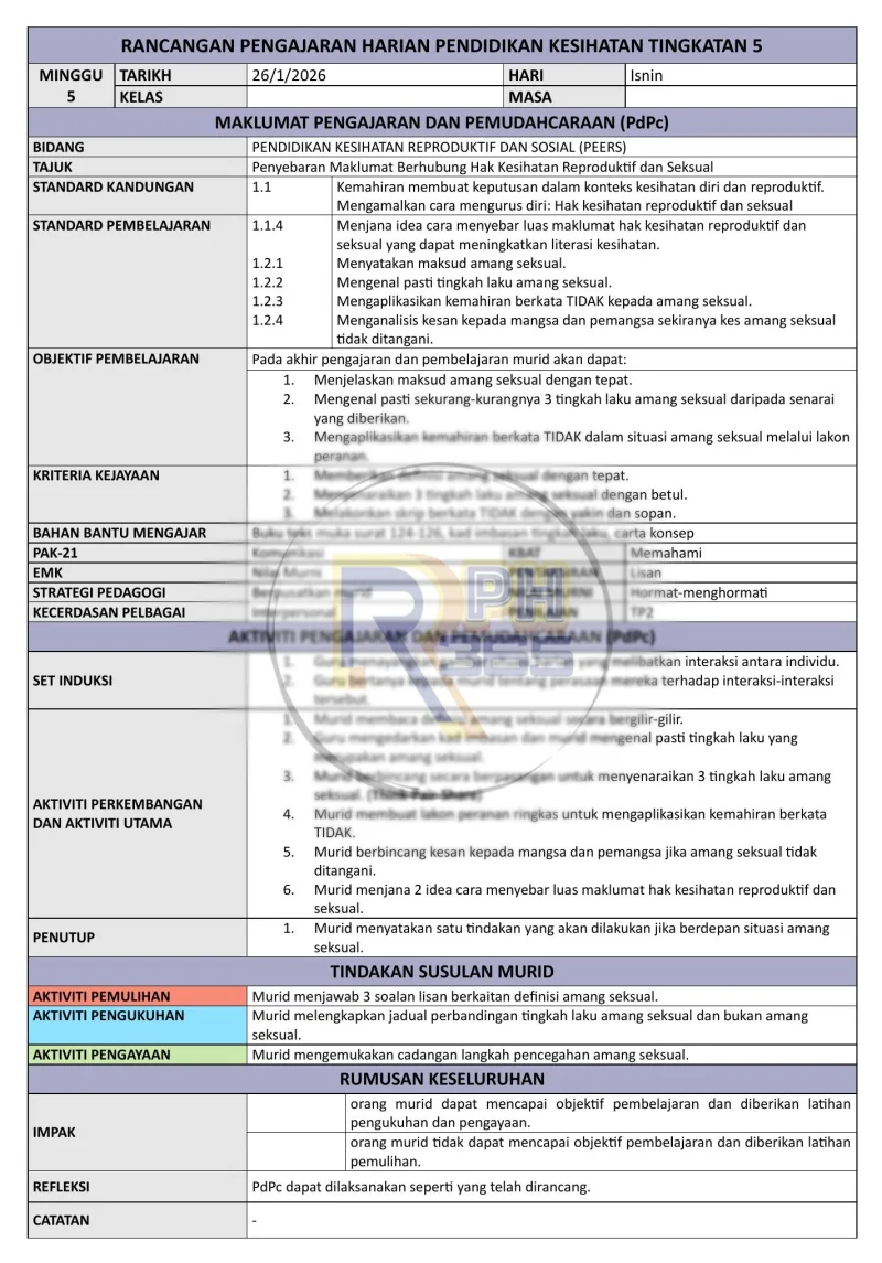 RPH & RPT 2026 PJPK Tingkatan 5 by RPH365