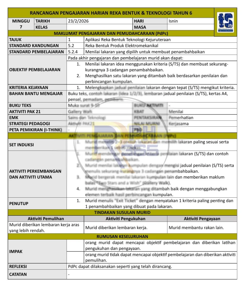 RPH & RPT 2026 Reka Bentuk dan Teknologi Tahun 6 SK by RPH365