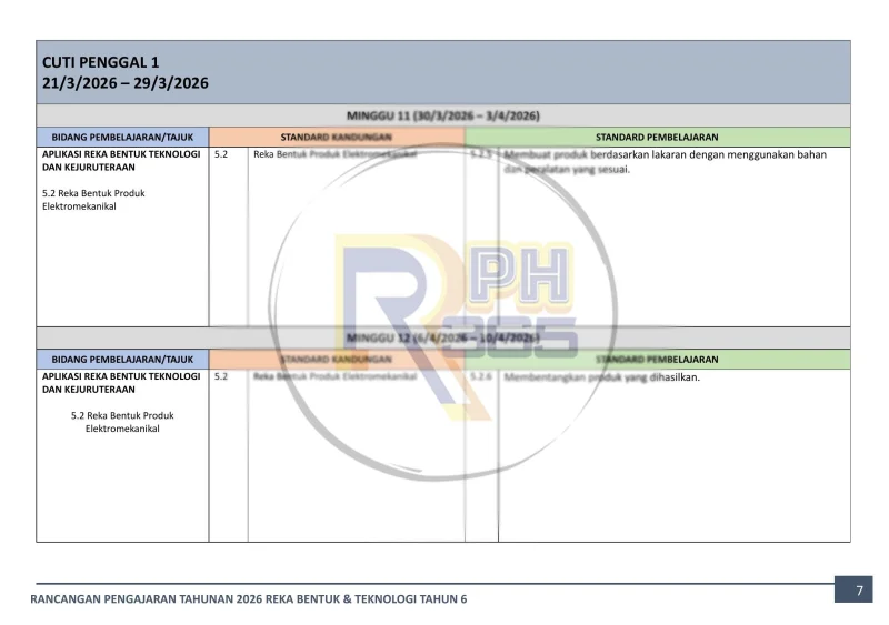 RPH & RPT 2026 Reka Bentuk dan Teknologi Tahun 6 SK menyediakan perancangan pengajaran lengkap untuk subjek RBT mengikut Takwim Persekolahan 2026 selama 43 minggu. Disusun oleh guru subjek berpengalaman berdasarkan DSKP KSSR Semakan 2017.