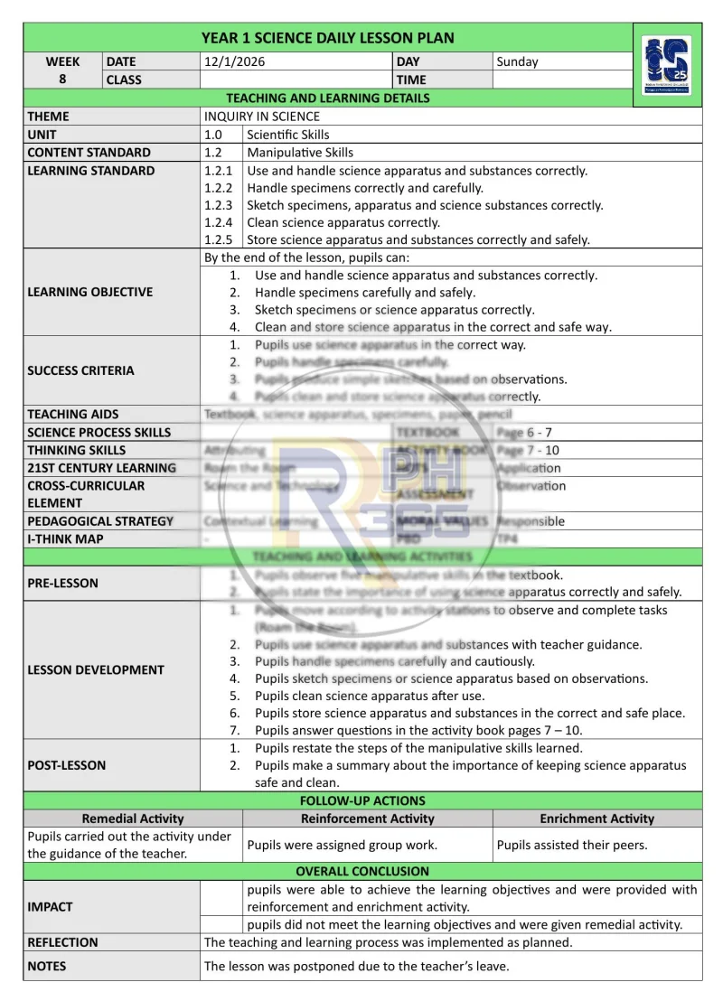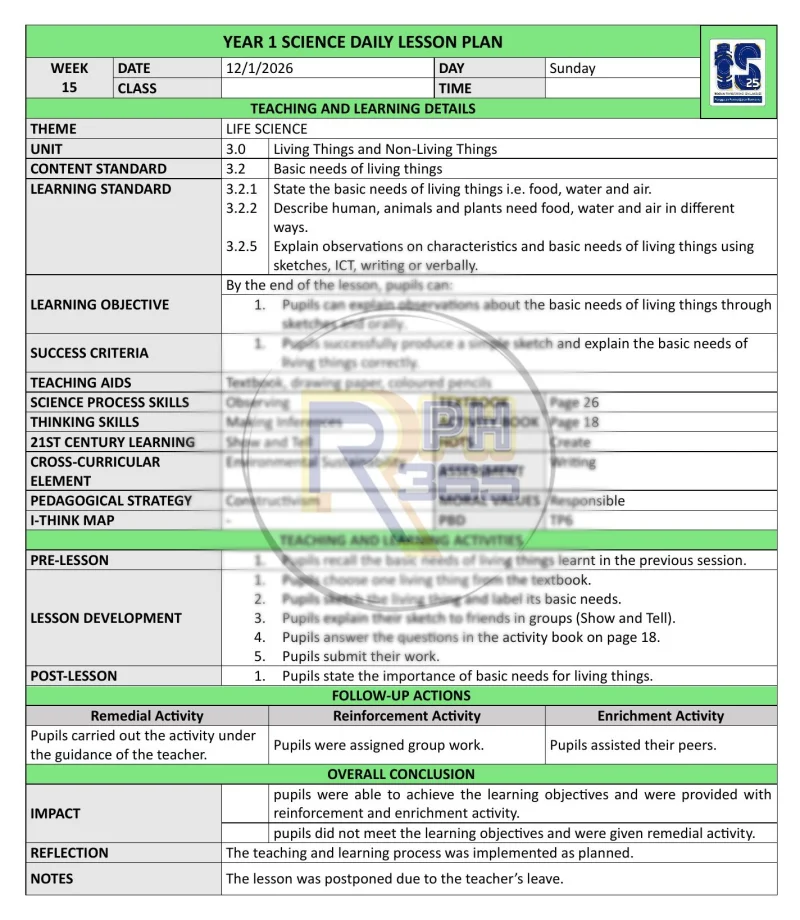 RPH & RPT 2026 Sains DLP Tahun 1 by RPH365