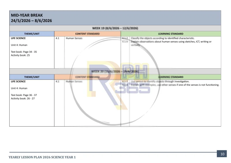 * RPH disusun mengikut minggu Takwim Persekolahan 2026