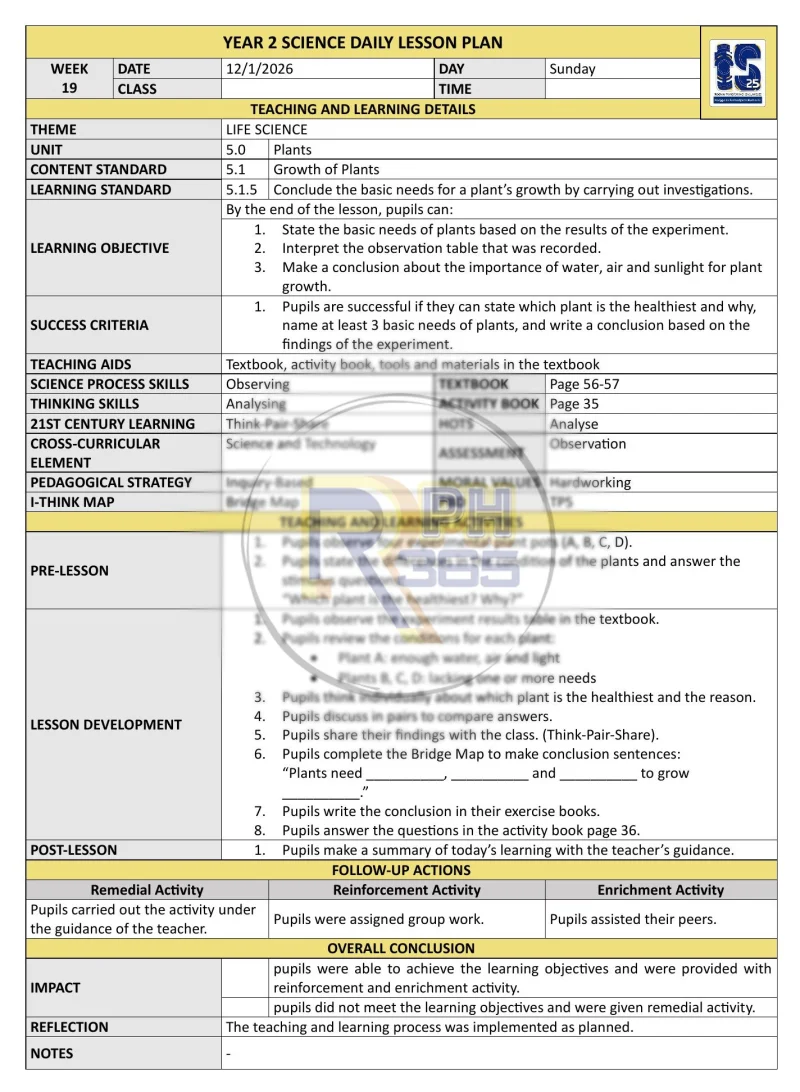 RPH & RPT 2026 Sains DLP Tahun 2 by RPH365
