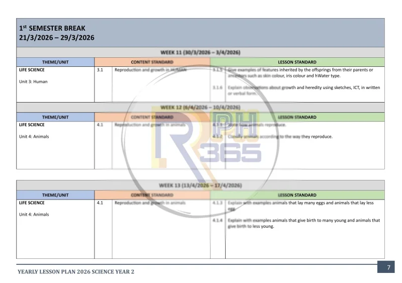 * RPH disusun mengikut minggu Takwim Persekolahan 2026 (43 minggu)