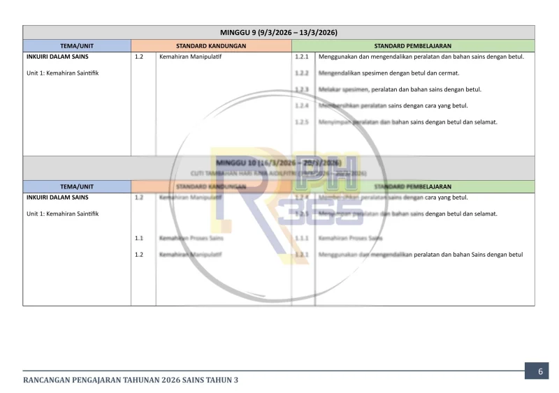 RPH & RPT 2026 Sains Tahun 3 KSSR - lengkap 3 tema (Inkuiri dalam Sains, Sains Hayat, Sains Fizikal) dengan kemahiran saintifik dan manipulatif. Format DOCX boleh edit.