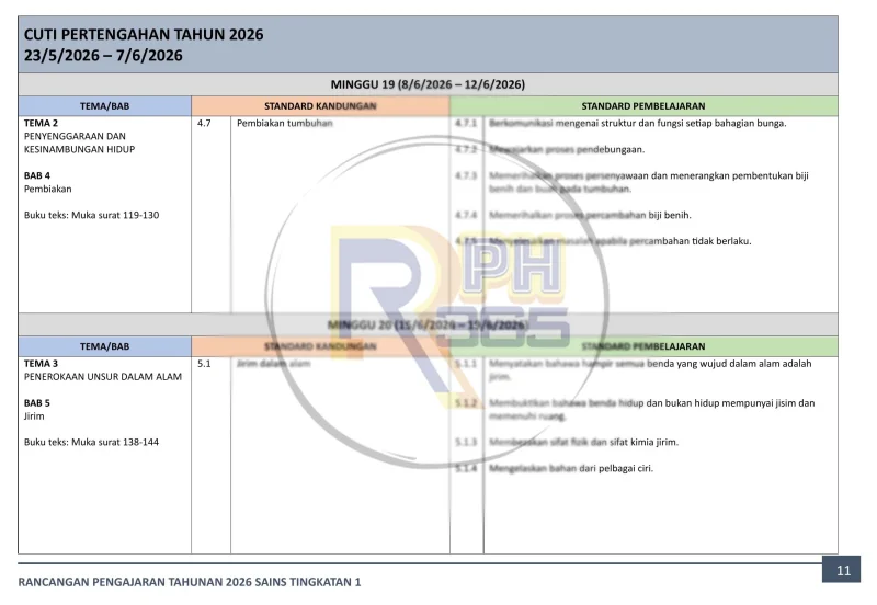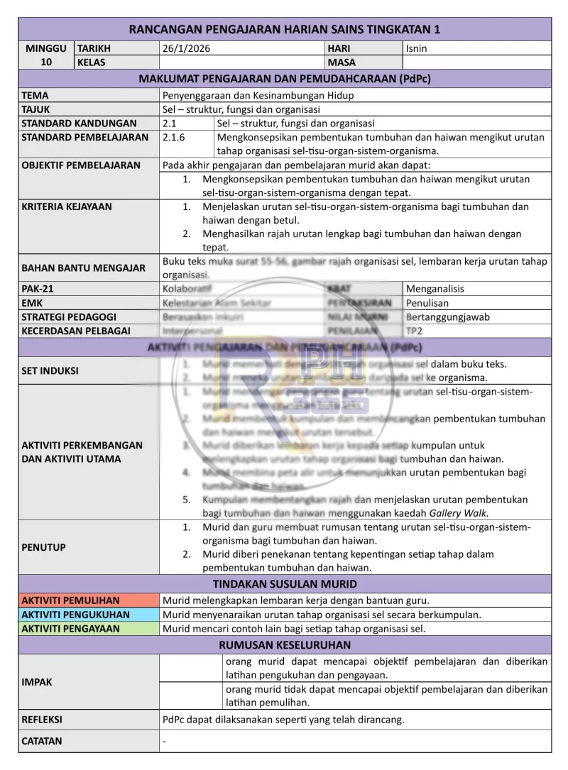 RPH & RPT 2026 Sains Tingkatan 1 by RPH365