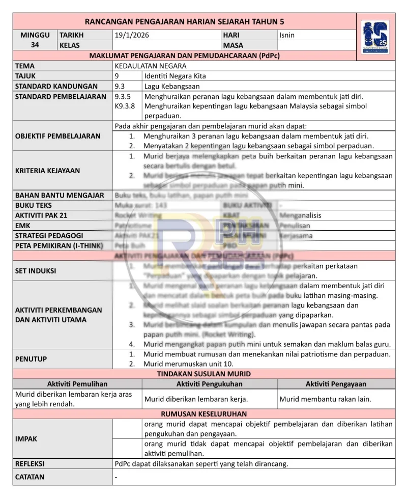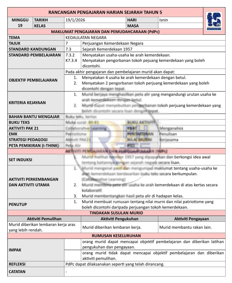 - RPH TS25 (PAK21, Strategi, EMK dan lain-lain) + Pendidikan Sivik