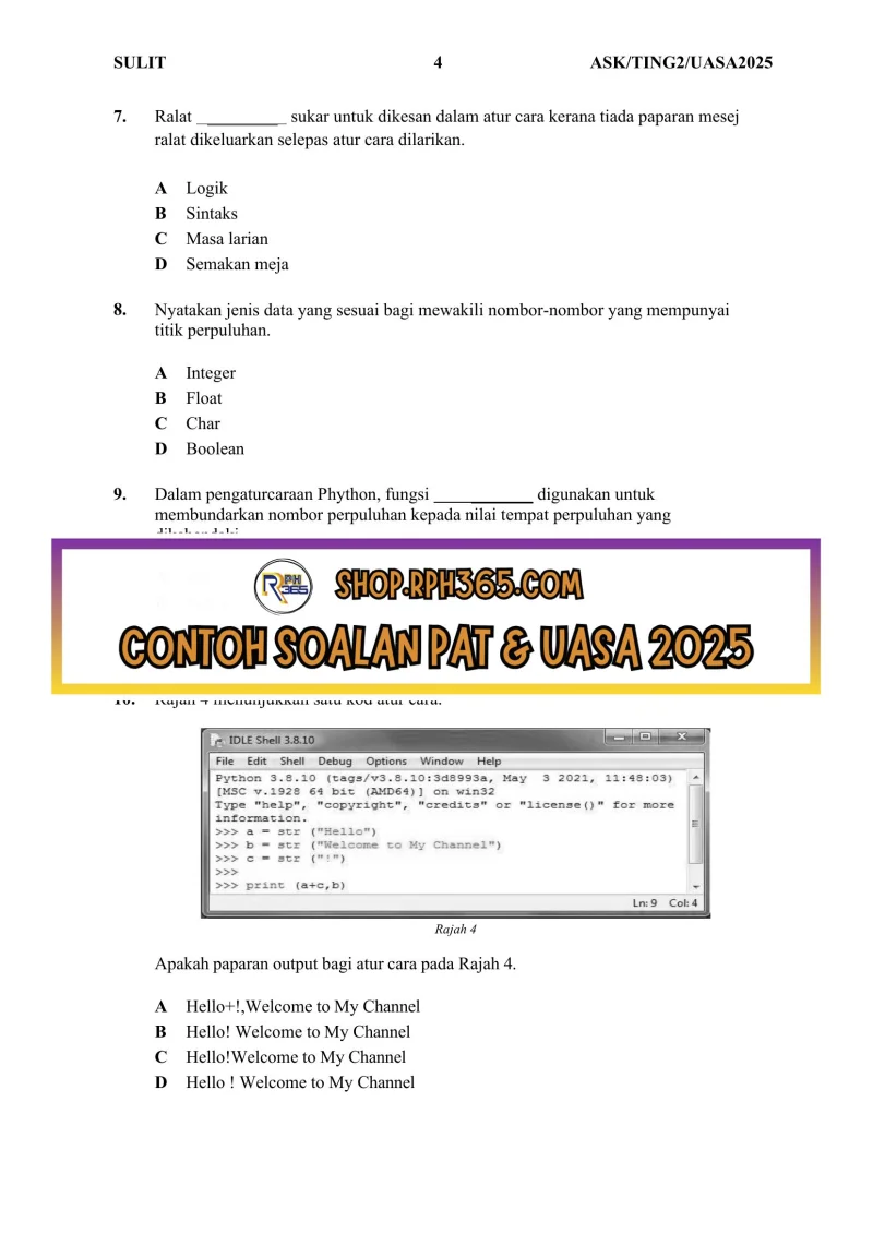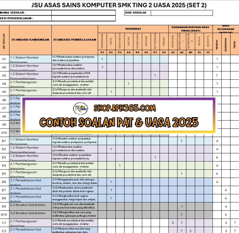 Jumlah Soalan: 2 Set Penulis: Saifuddin Pakej: Soalan + Jawapan + JSU Format fail: Words/PDF/Excel