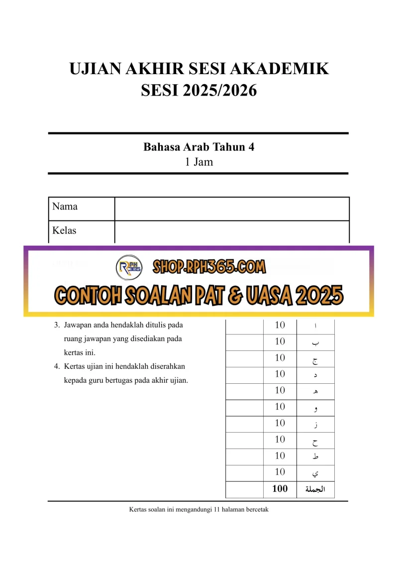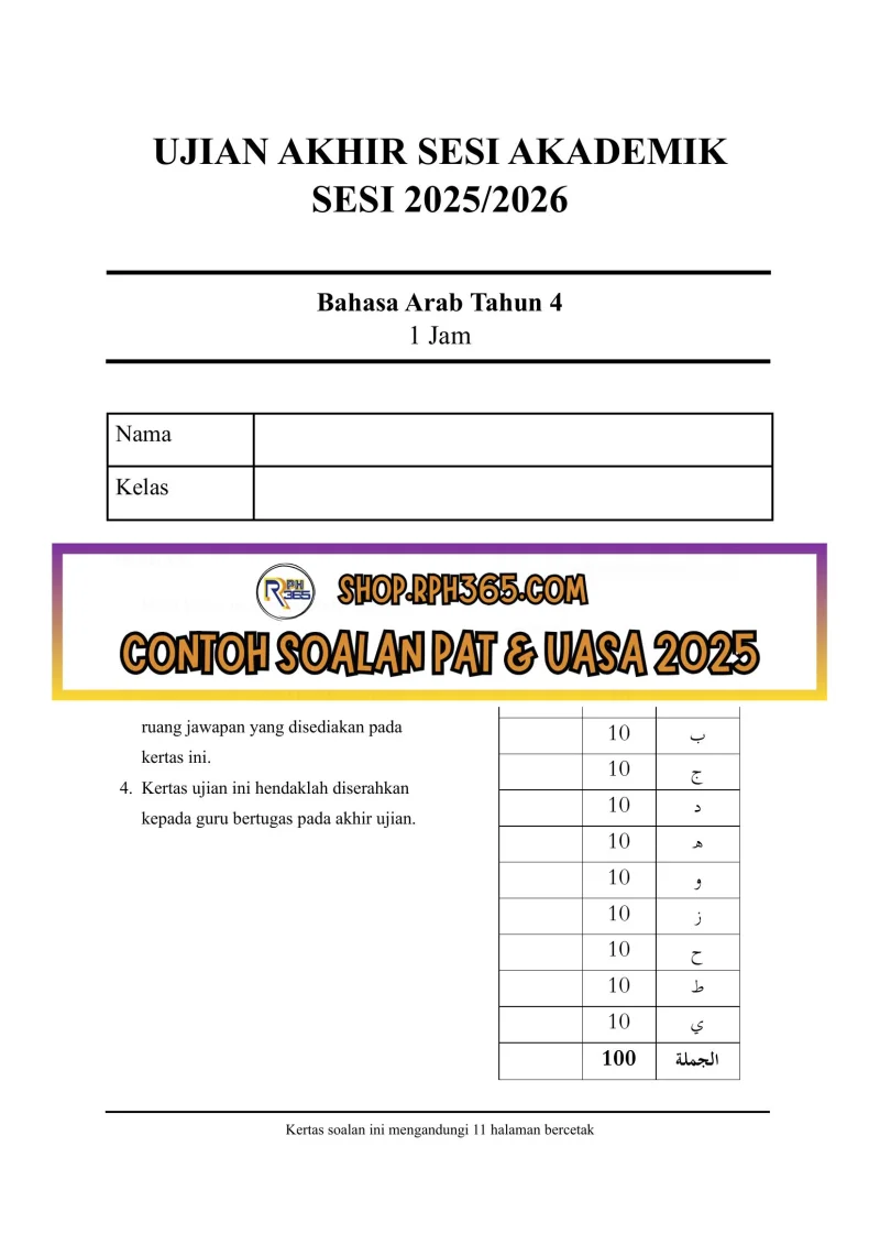 UASA 2025 Bahasa Arab SK Tahun 4 by Ustazah Najerah