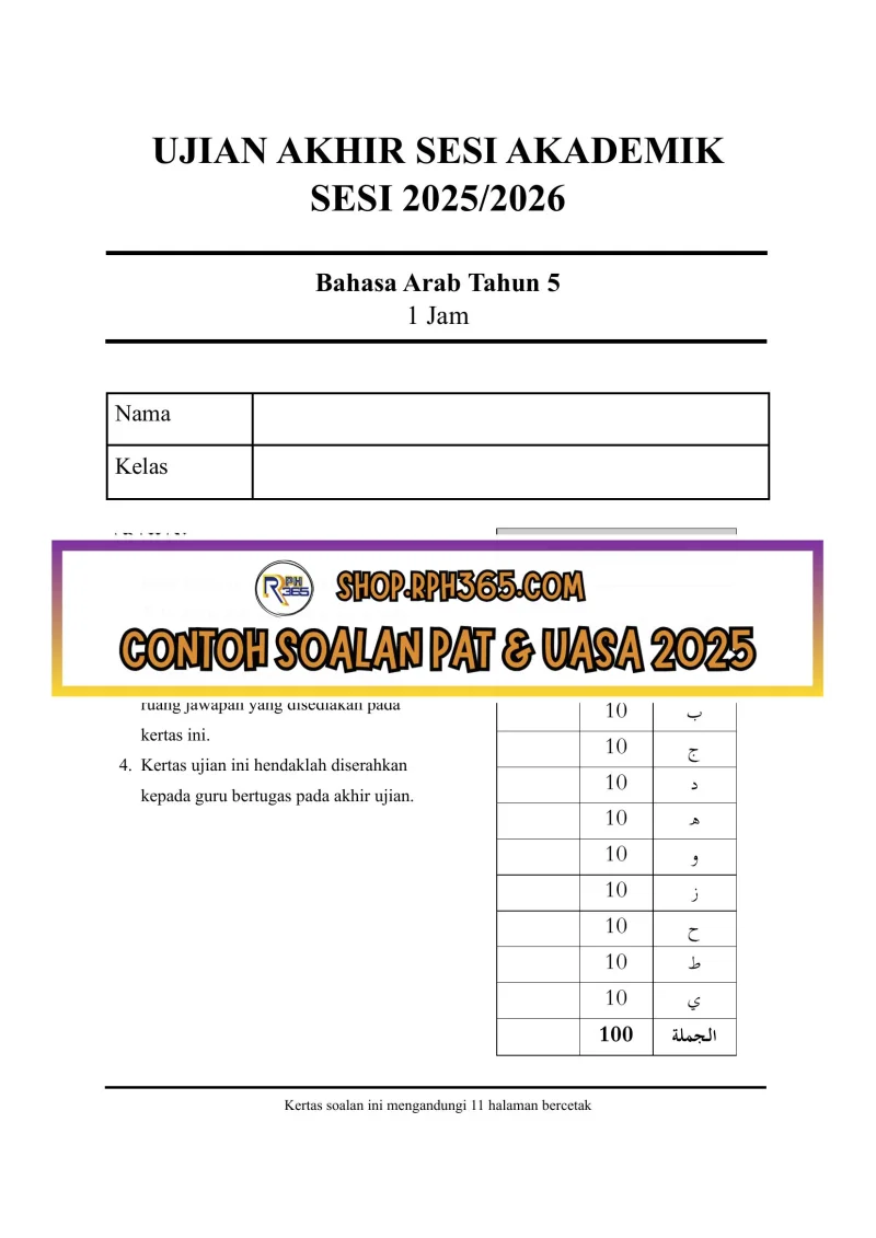 UASA 2025 Bahasa Arab SK Tahun 5 by Ustazah Najerah