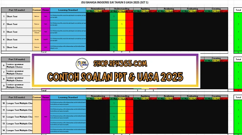 Jumlah Soalan: 2 Set Penulis: AaiZairi Pakej: Soalan + Jawapan + JSU Format fail: Words/PDF/Excel