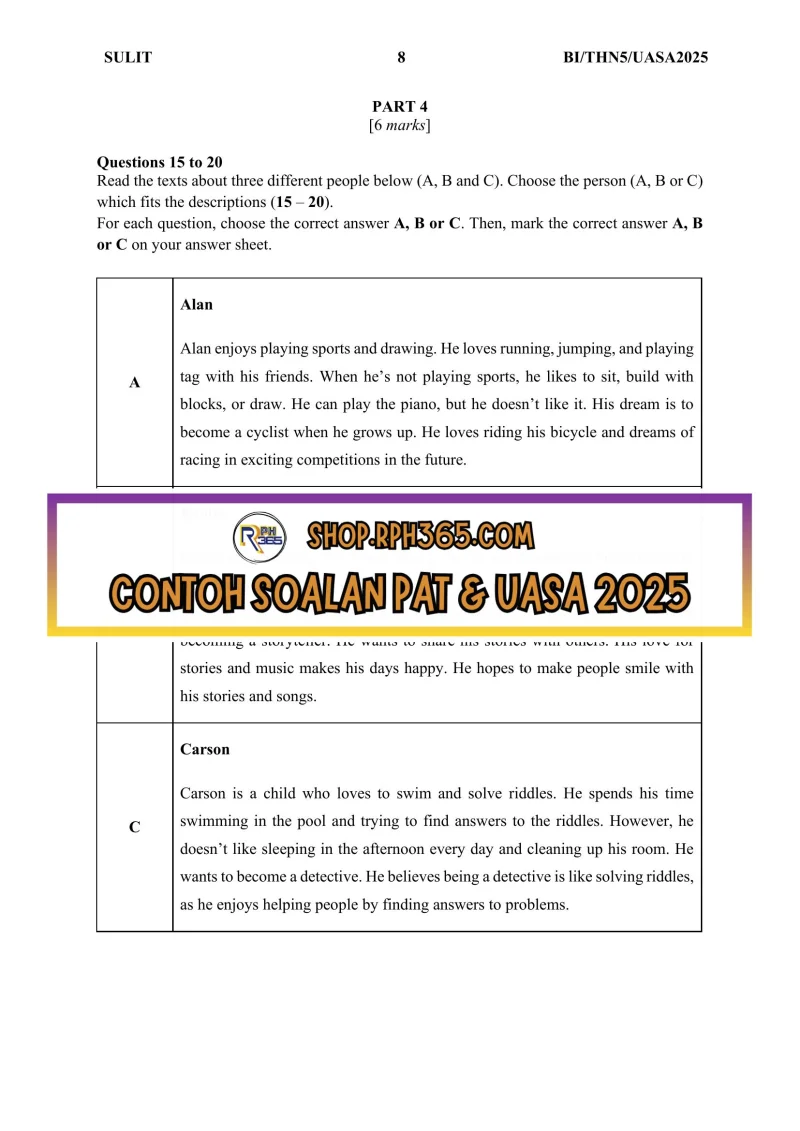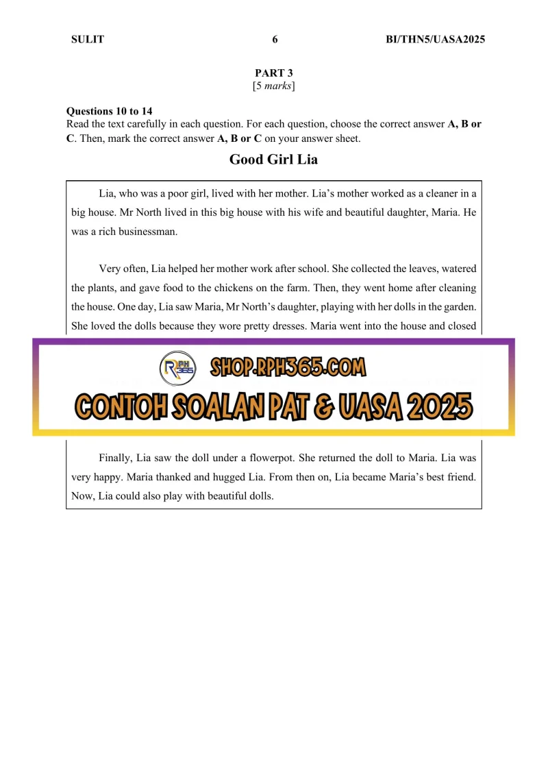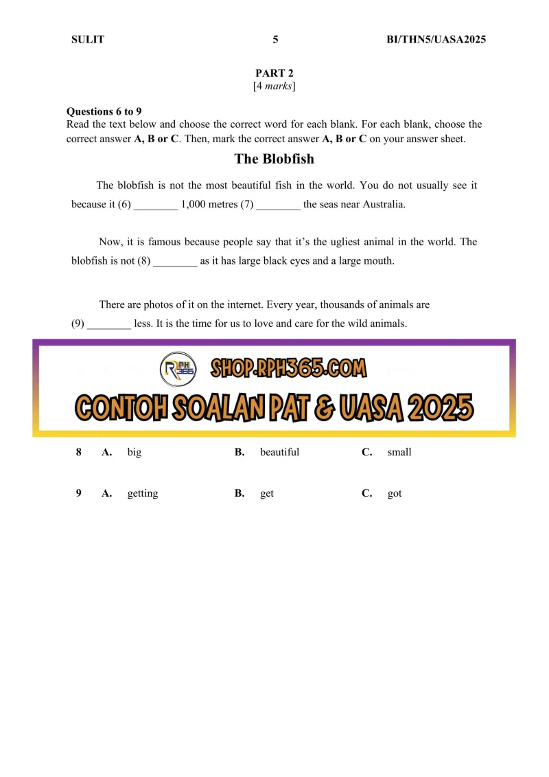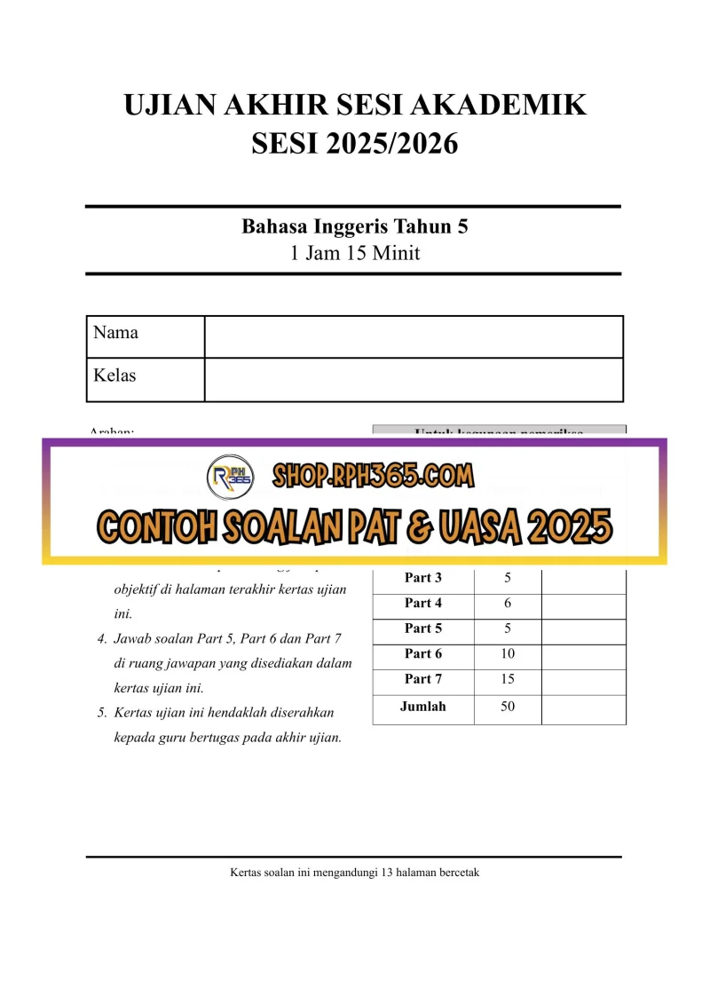 UASA 2025 Bahasa Inggeris SJK Tahun 5 by AaiZairi