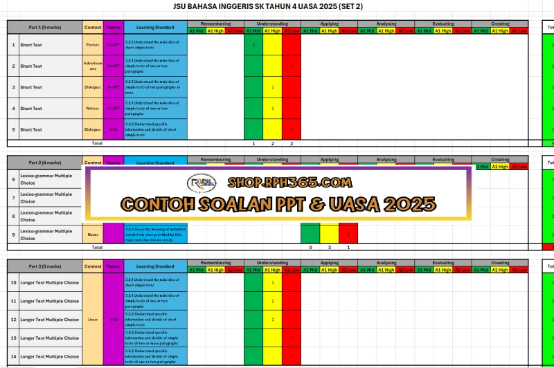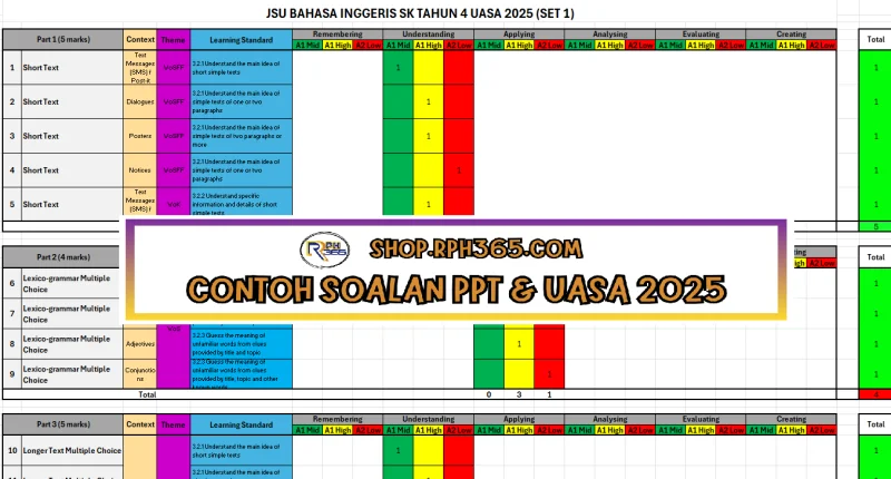 Jumlah Soalan: 2 Set Penulis: Cikgu Nuh Pakej: Soalan + Jawapan + JSU Format fail: Words/PDF/Excel
