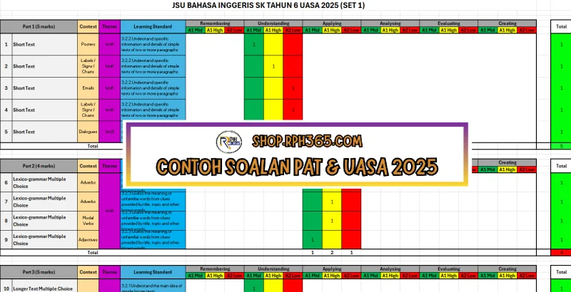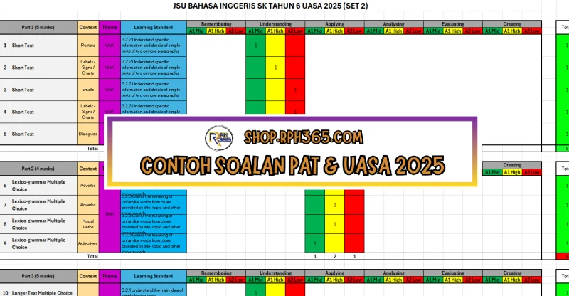 Jumlah Soalan: 2 Set Penulis: Cikgu Nuh Pakej: Soalan + Jawapan + JSU Format fail: Words/PDF/Excel