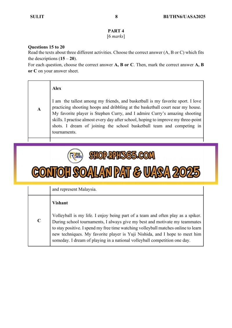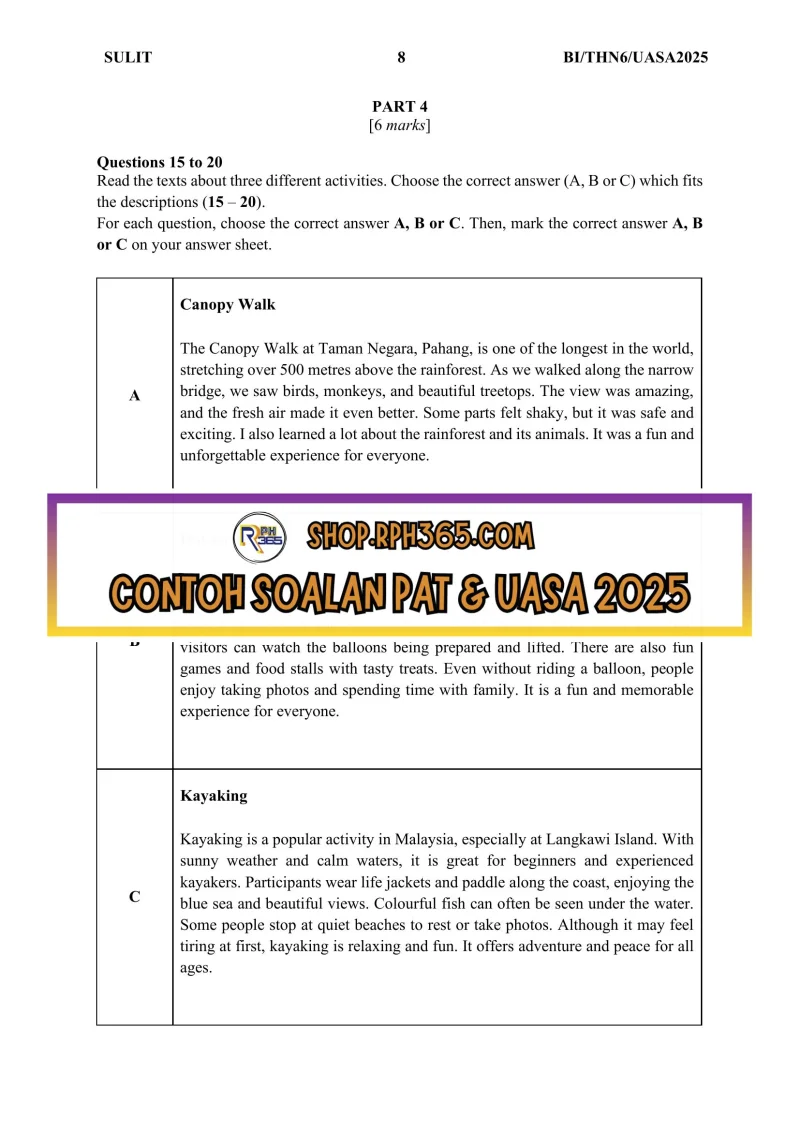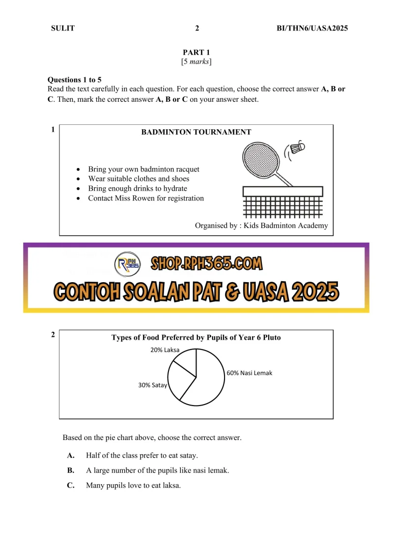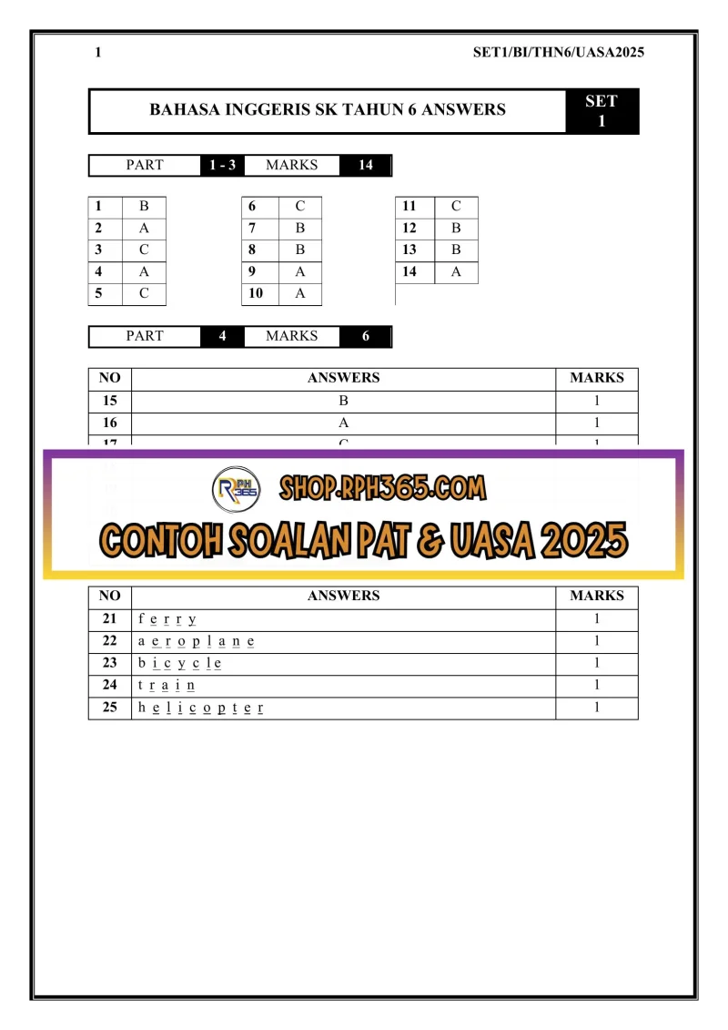 UASA 2025 Bahasa Inggeris SK Tahun 6 by Cikgu Nuh