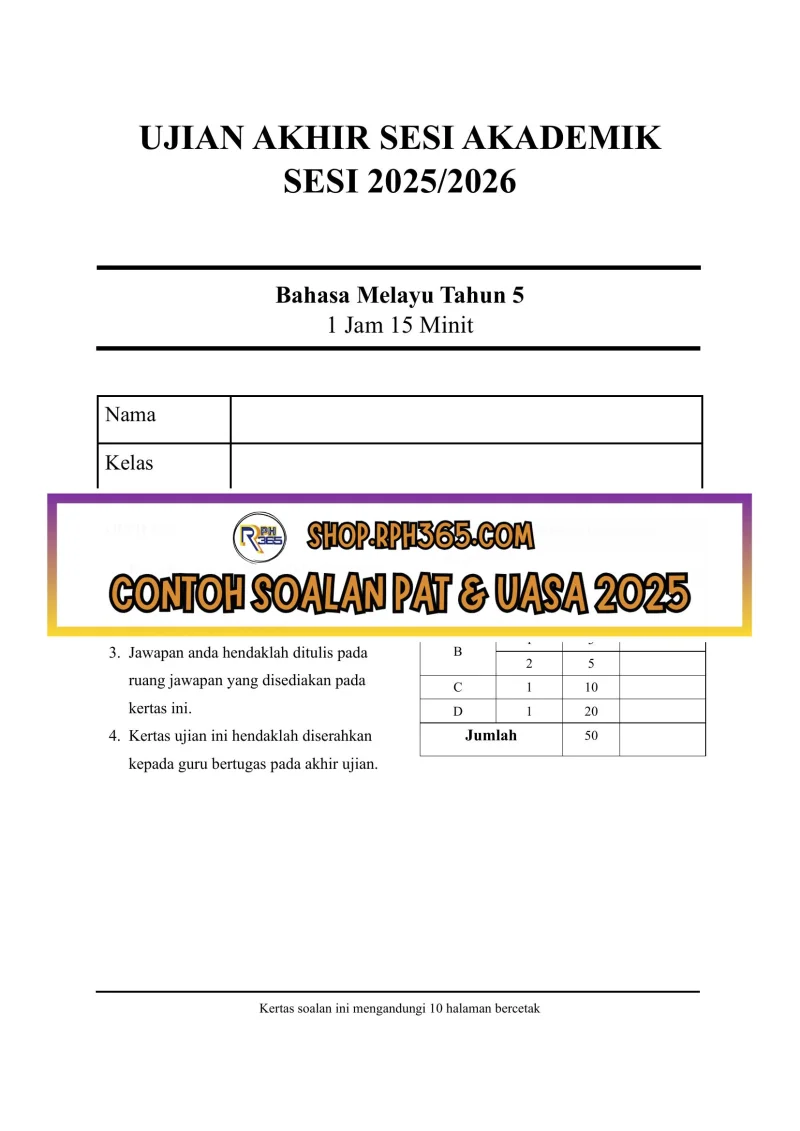 UASA 2025 Bahasa Melayu SJK Tahun 5 by Haz Shah