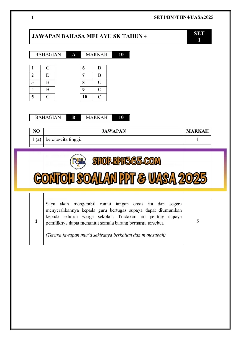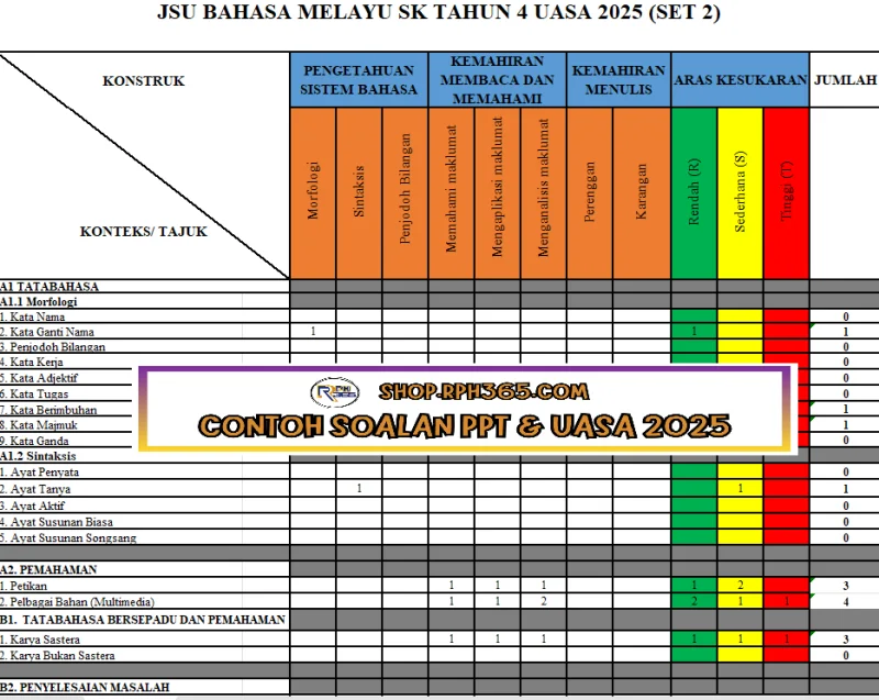 Jumlah Soalan: 2 Set Penulis: Cikgu Bib Pakej: Soalan + Jawapan + JSU Format fail: Words/PDF/Excel