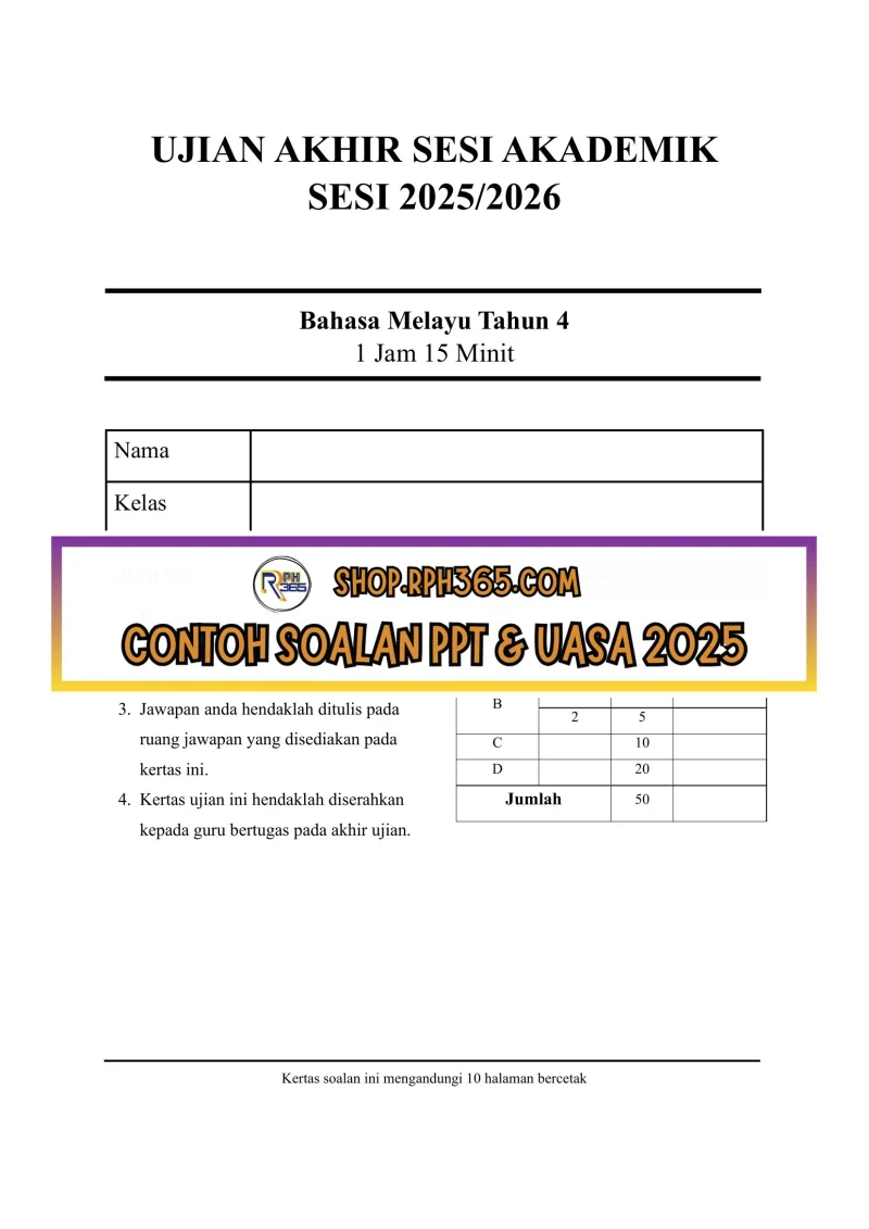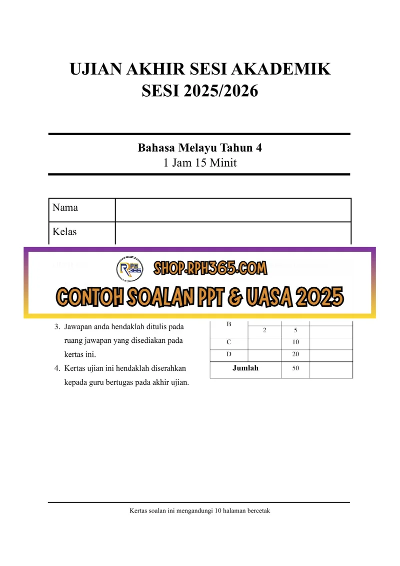 UASA 2025 Bahasa Melayu SK Tahun 4 by Cikgu Bib