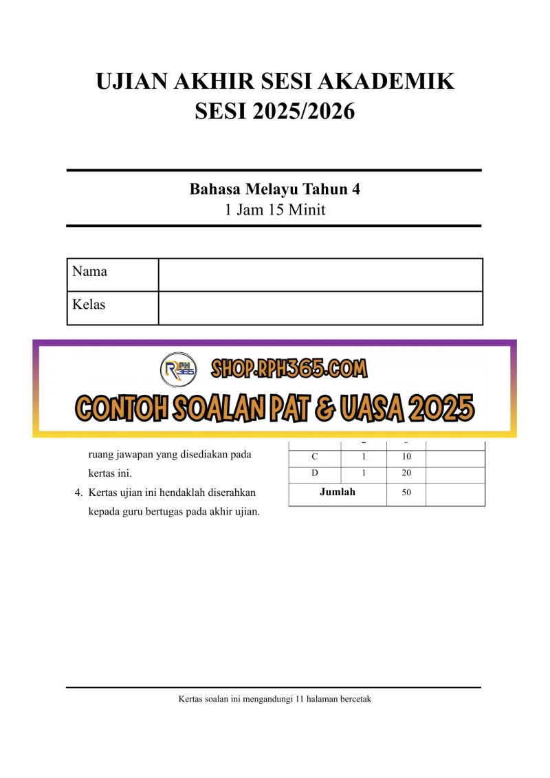 UASA 2025 Bahasa Melayu SK Tahun 4 by Cikgu Fahmi
