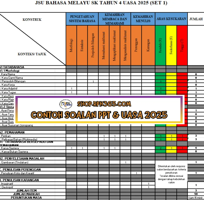 Jumlah Soalan: 2 Set Penulis: Cikgu Fahmi Pakej: Soalan + Jawapan + JSU Format fail: Words/PDF/Excel