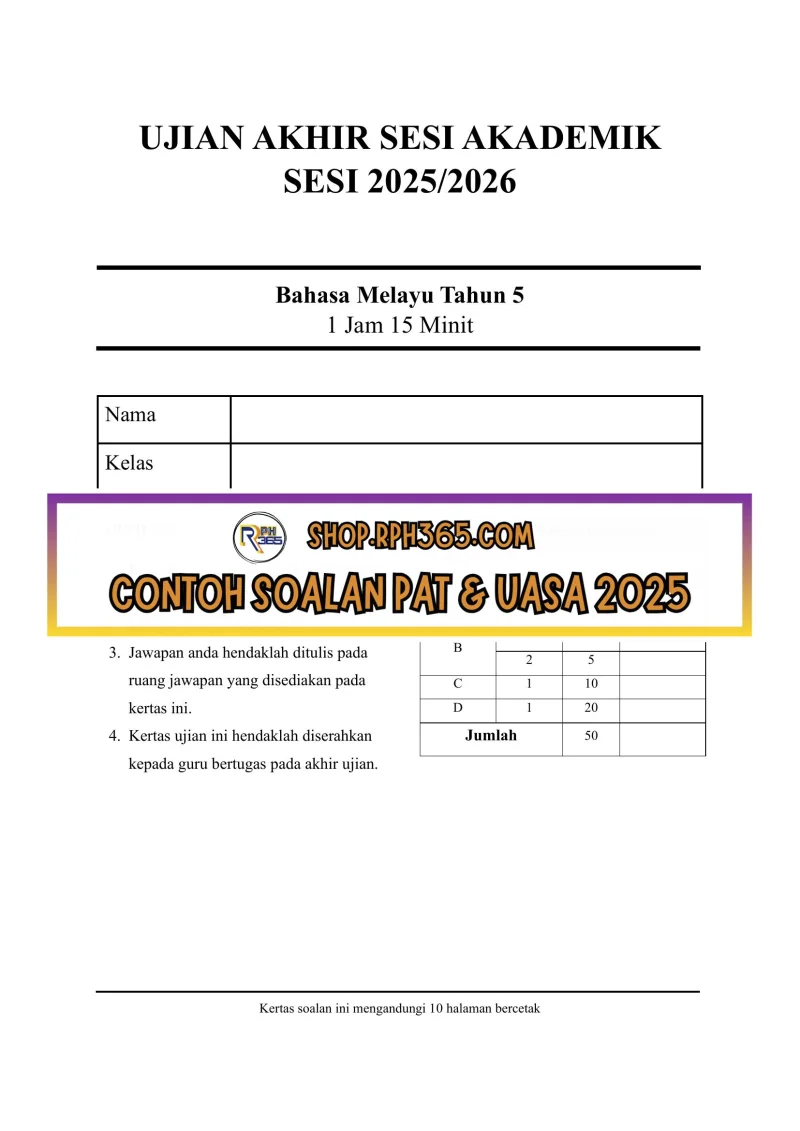 UASA 2025 Bahasa Melayu SK Tahun 5 by Cikgu Fahmi