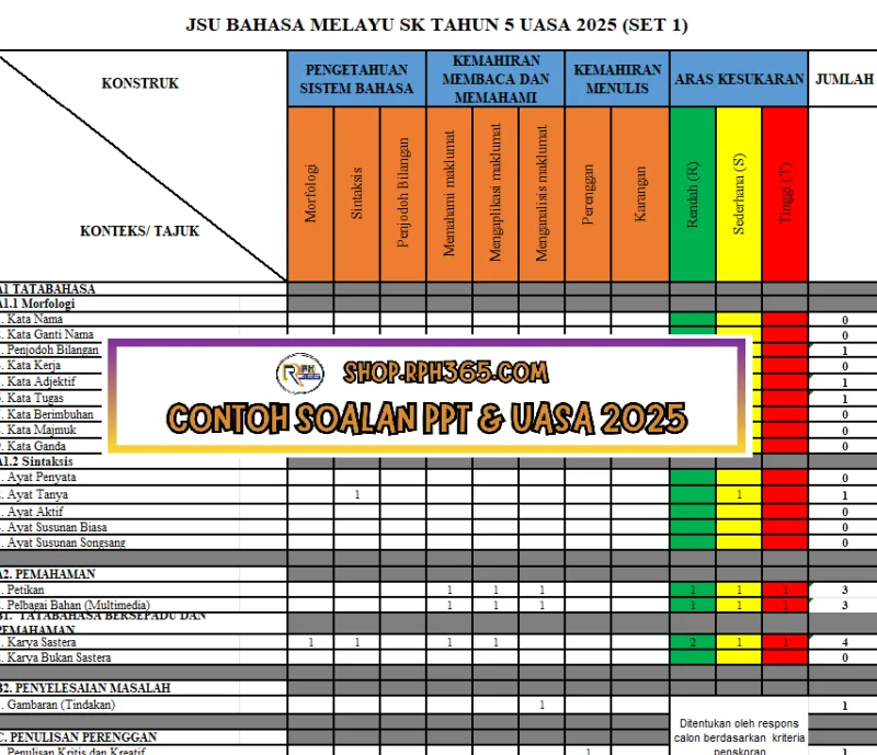 Jumlah Soalan: 2 Set Penulis: Cikgu Fahmi Pakej: Soalan + Jawapan + JSU Format fail: Words/PDF/Excel