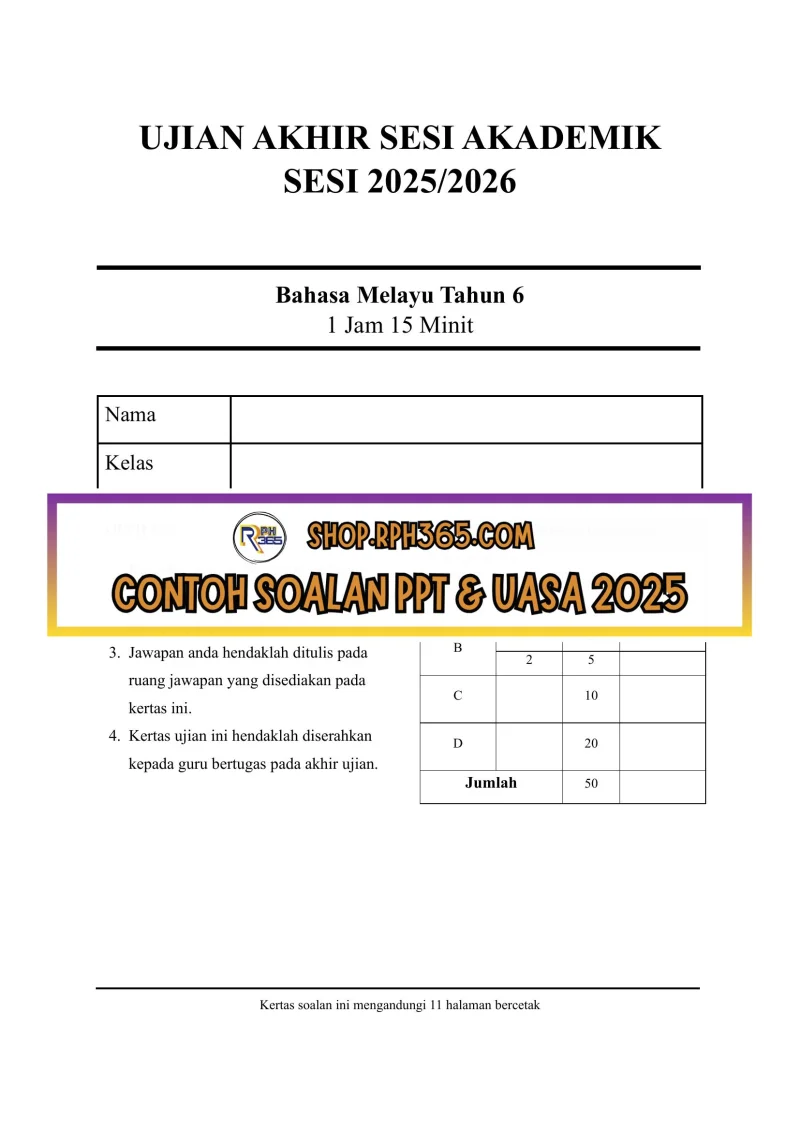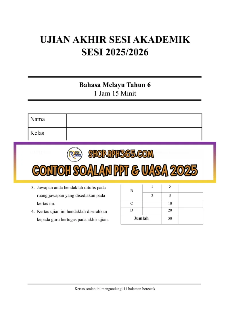 UASA 2025 Bahasa Melayu SK Tahun 6 by Cikgu Bib