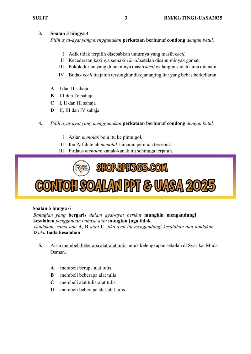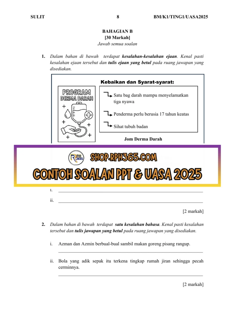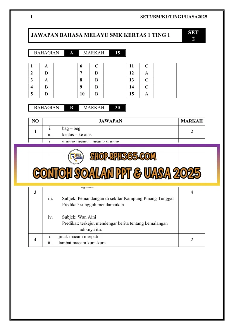 UASA 2025 Bahasa Melayu SMK Ting 1 by Cikgu NCH