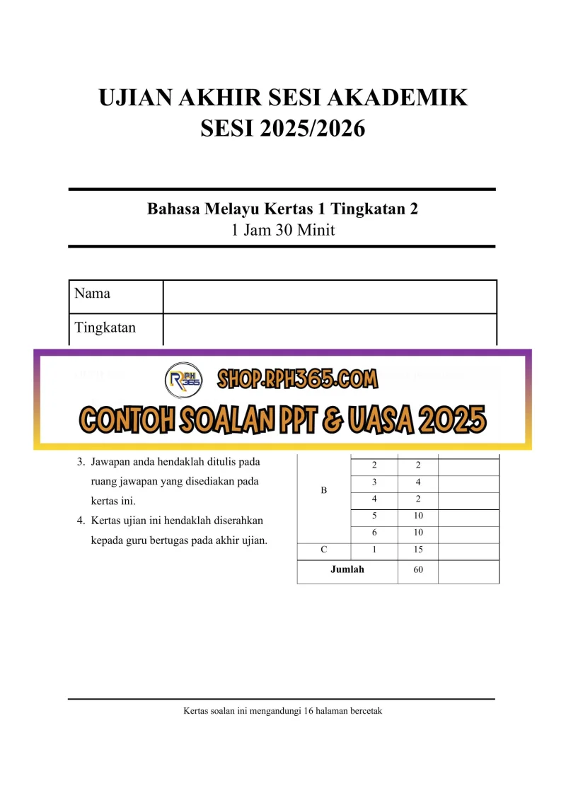 Jumlah Soalan: 2 Set Penulis: Cikgu NMMN Pakej: Soalan Kertas 1 dan 2 + Jawapan + JSU Format fail: Words/PDF/Excel