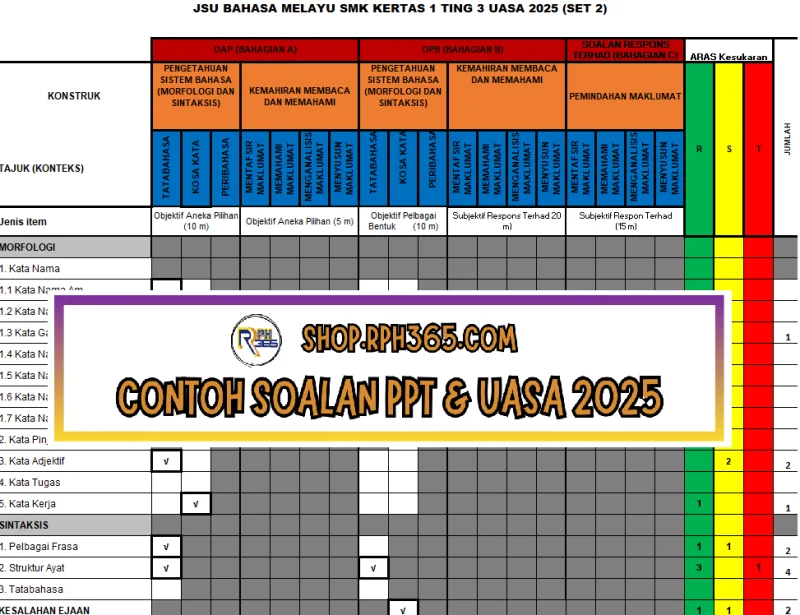 Jumlah Soalan: 2 Set Penulis: Cikgu NCH Pakej: Soalan Kertas 1 dan Kertas 2 + Jawapan + JSU Format fail: Words/PDF/Excel