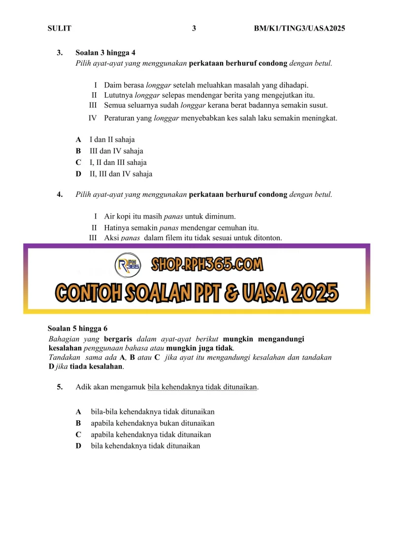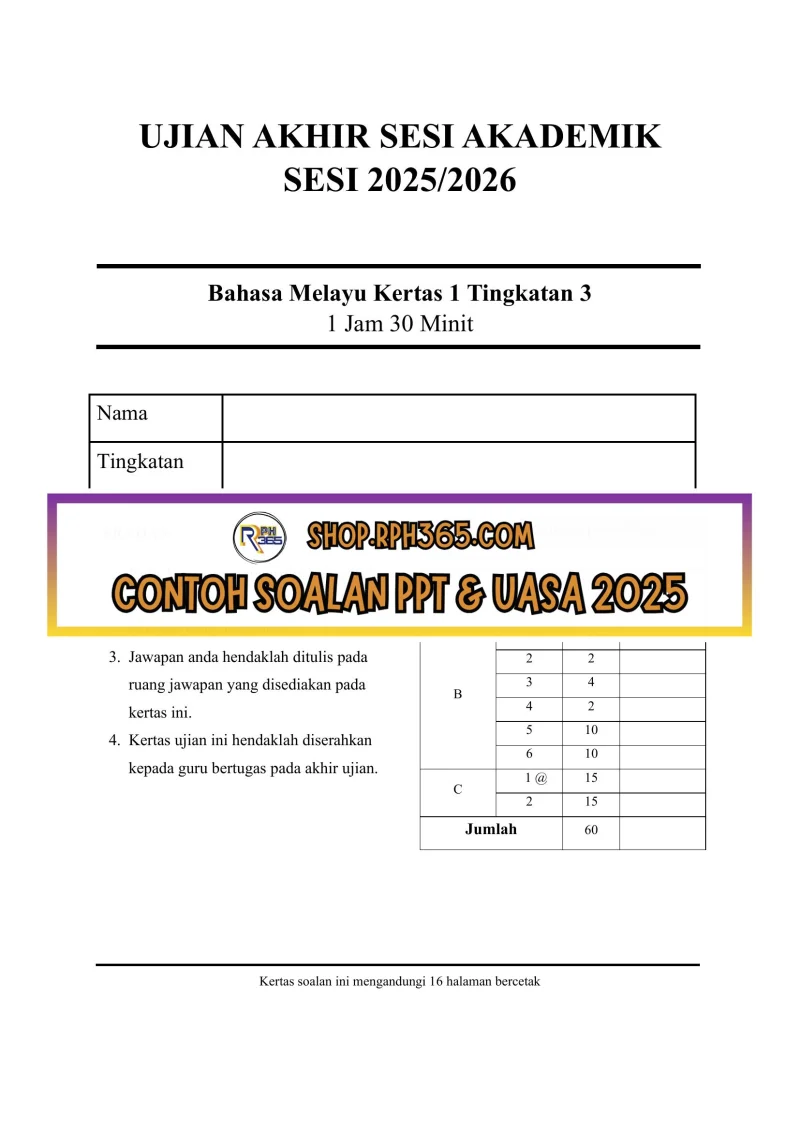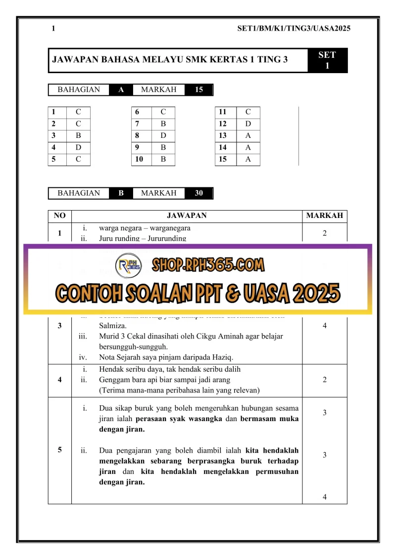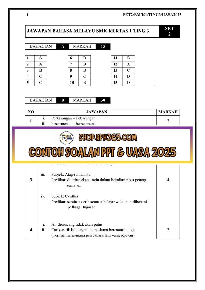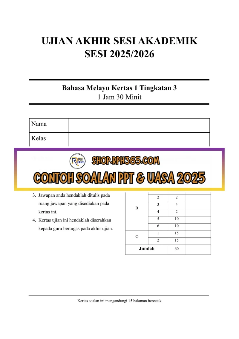 UASA 2025 Bahasa Melayu SMK Ting 3 by Cikgu NCH