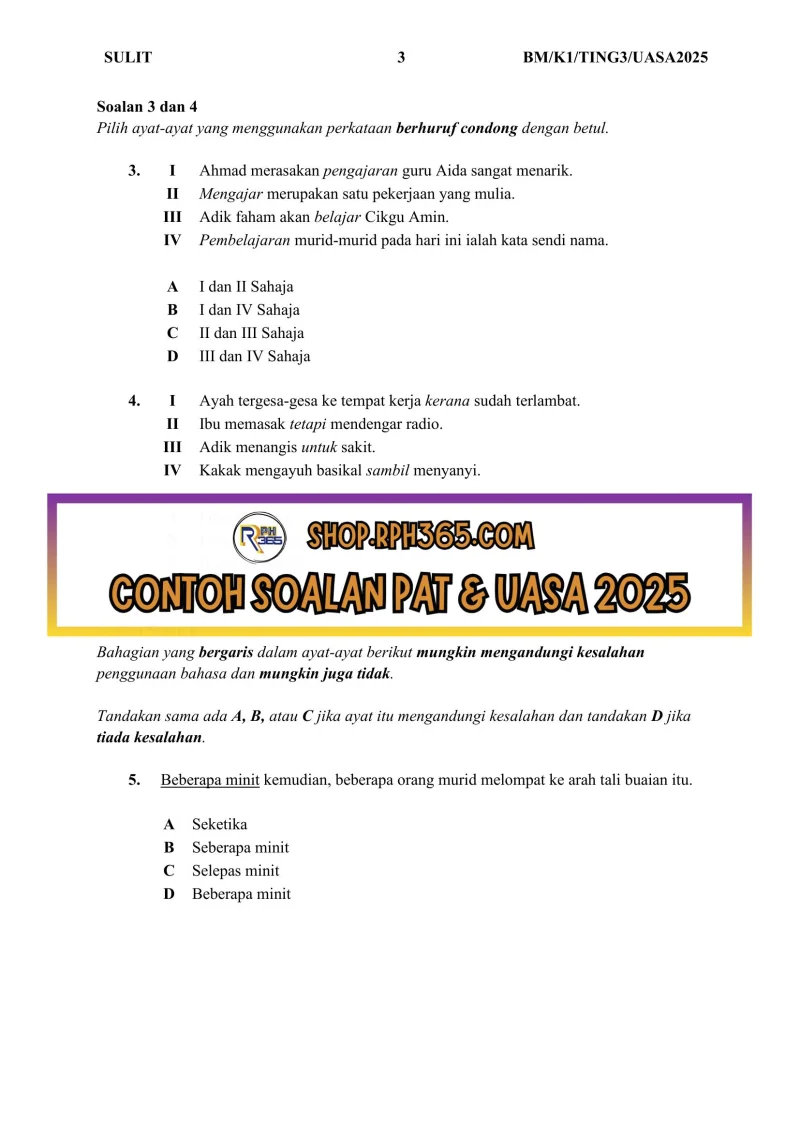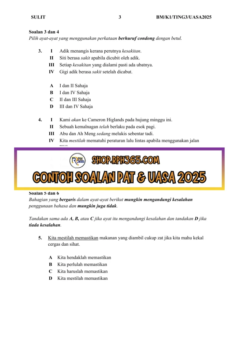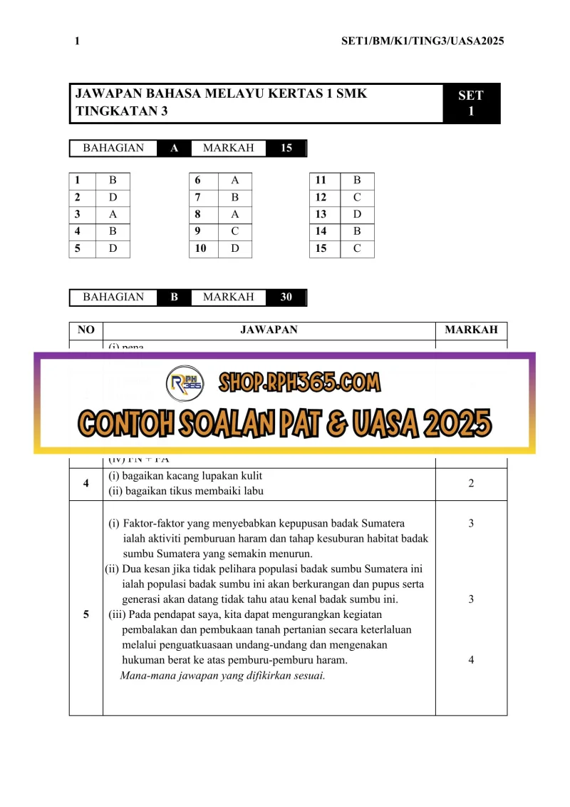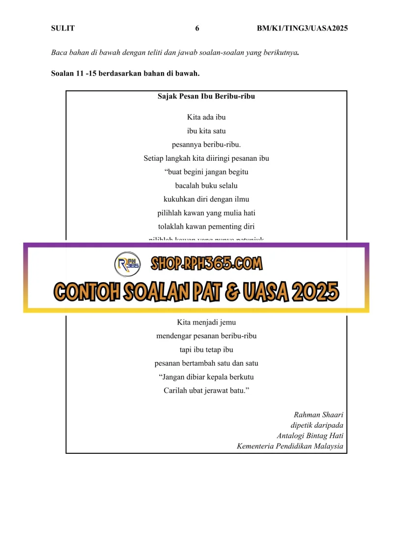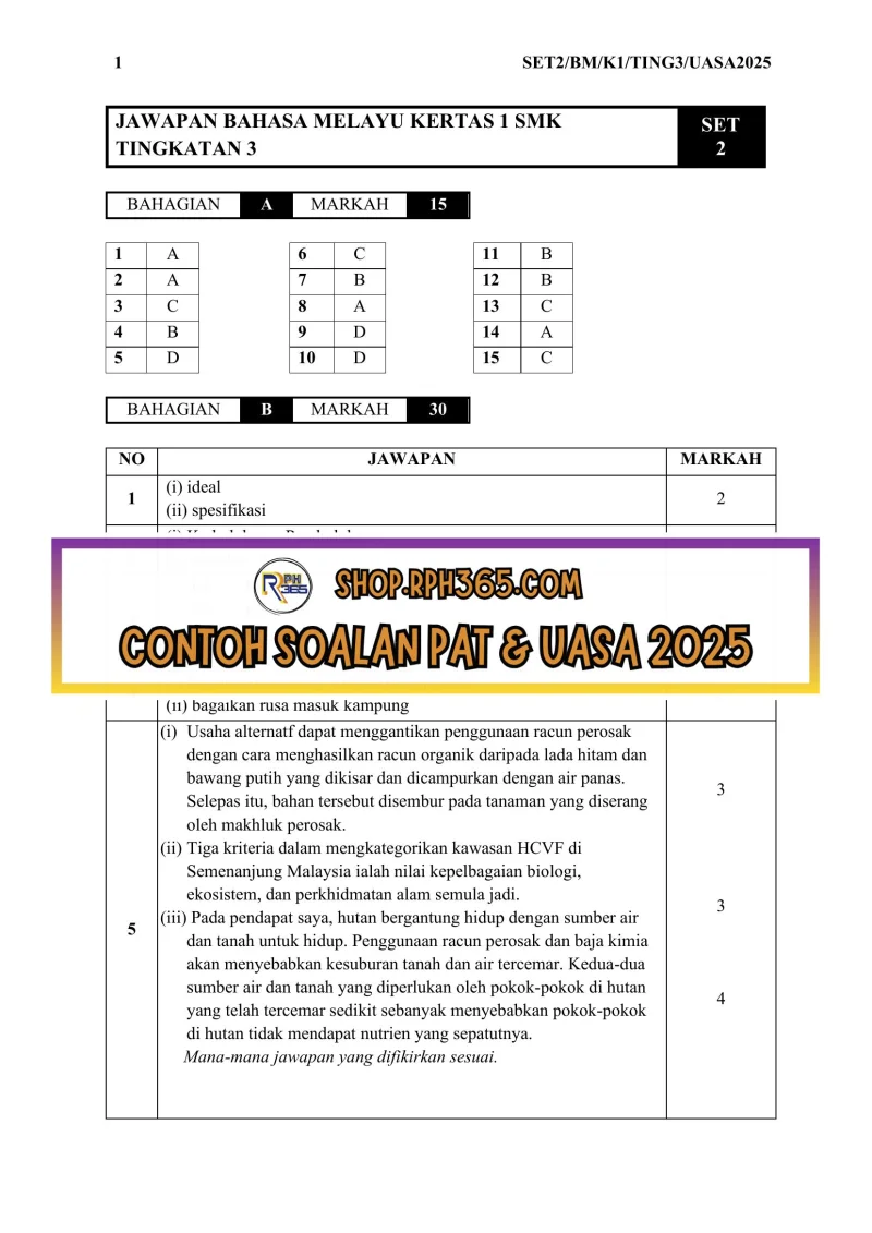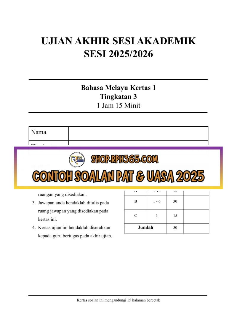 UASA 2025 Bahasa Melayu SMK Ting 3 by NH Azlin