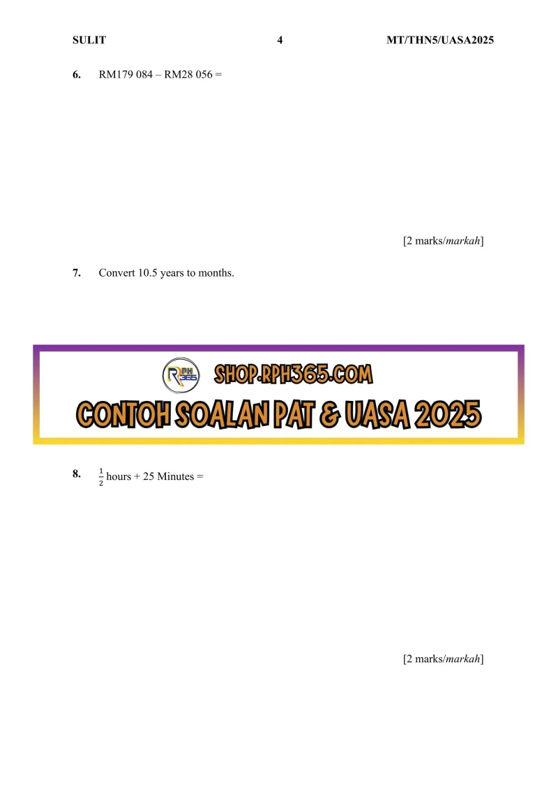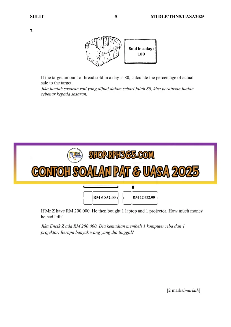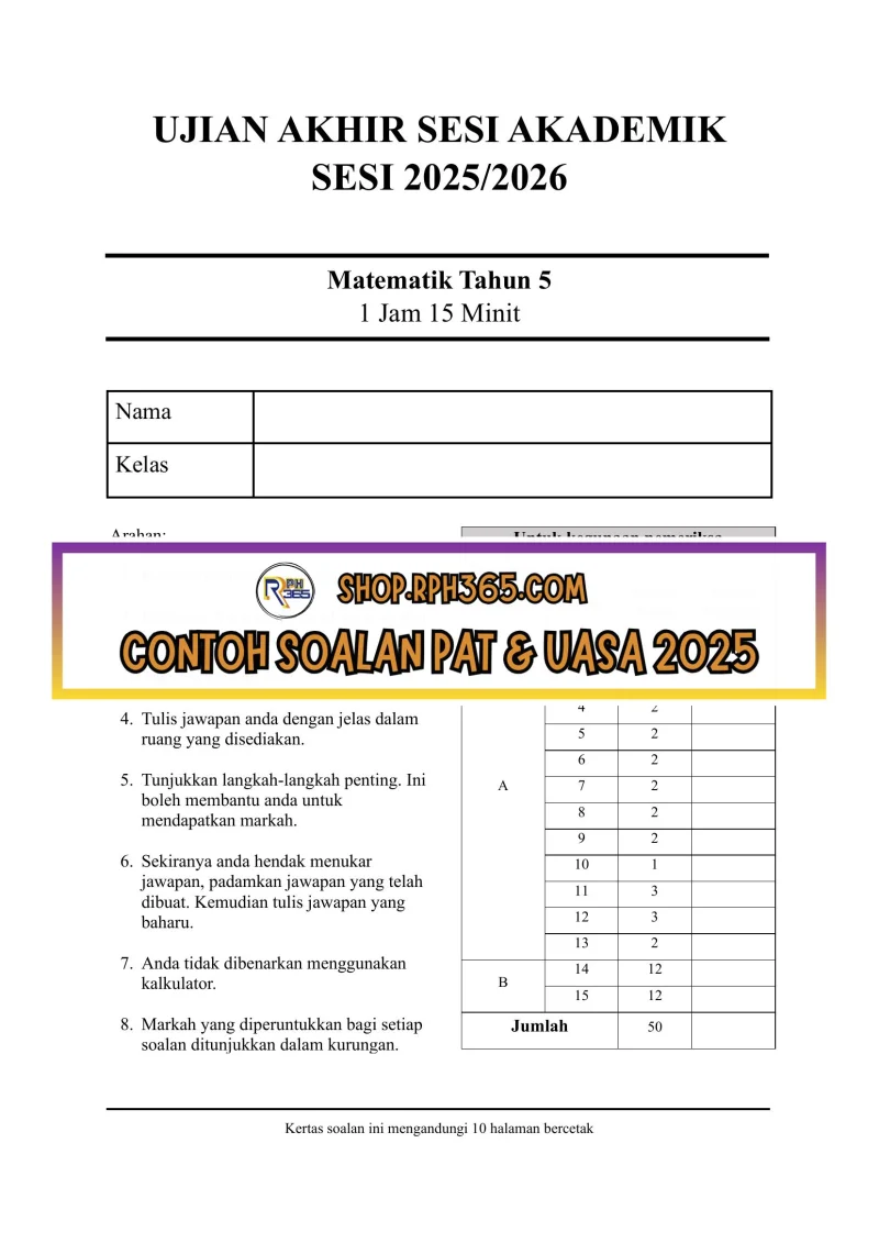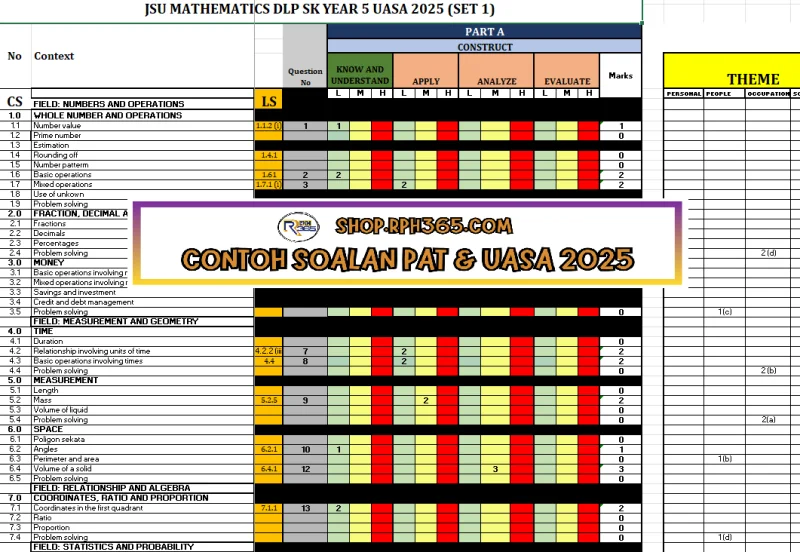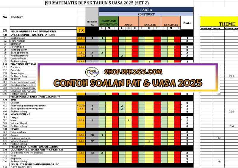 UASA 2025 Matematik DLP SK Tahun 5 by Cikgu Zul