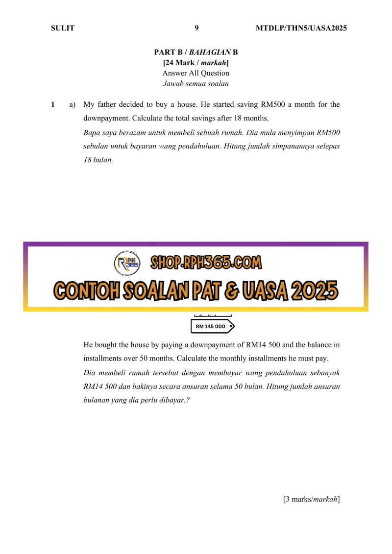 Jumlah Soalan: 2 Set Penulis: Cikgu Zul Pakej: Soalan + Jawapan + JSU Format fail: Words/PDF/Excel Bahasa: English/Bahasa Melayu