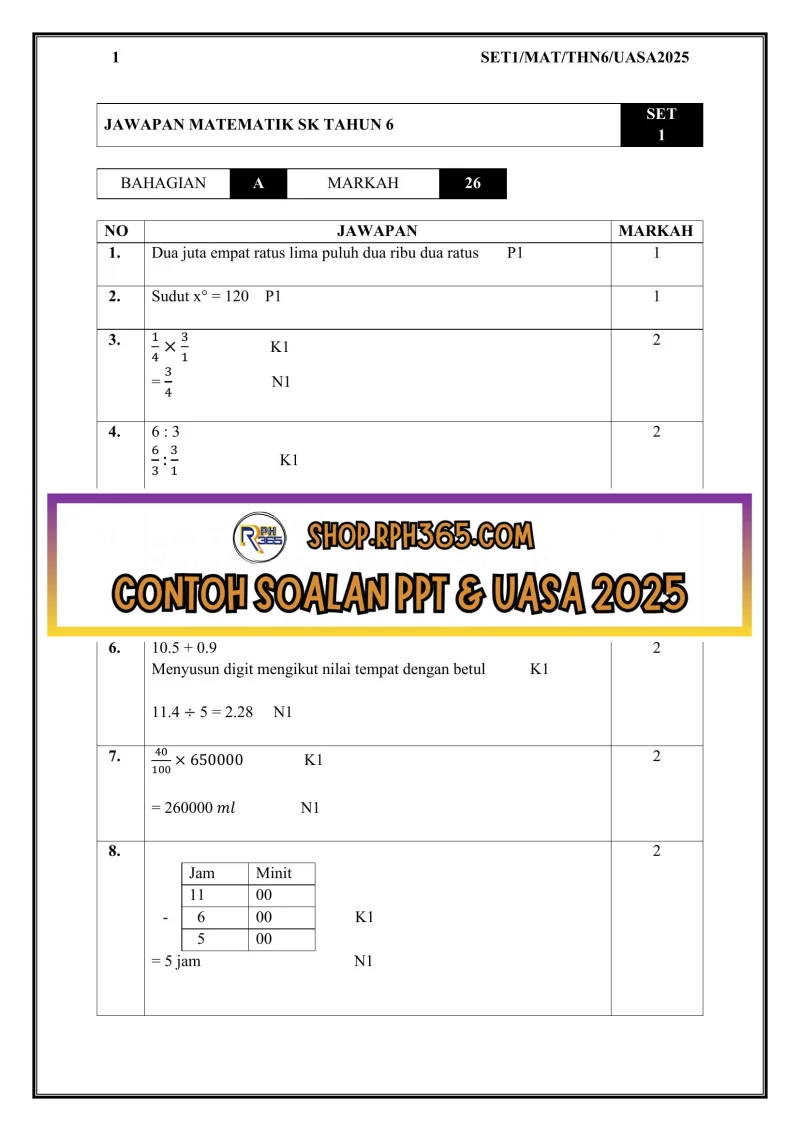 UASA 2025 Matematik SK Tahun 6 by Cikgu Affina