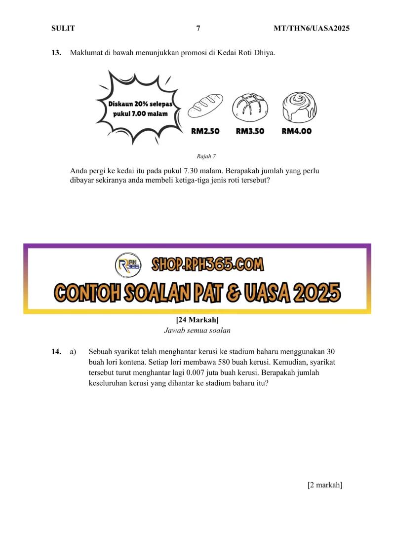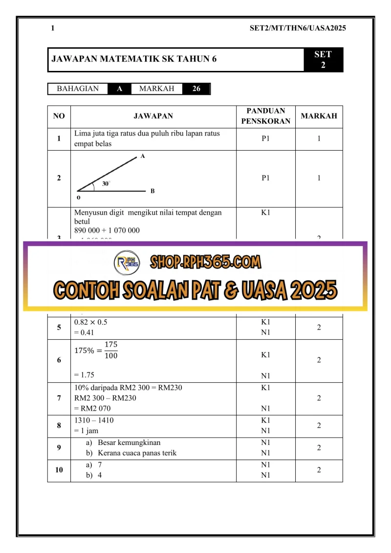 UASA 2025 Matematik SK Tahun 6 by Cikgu Fatimah