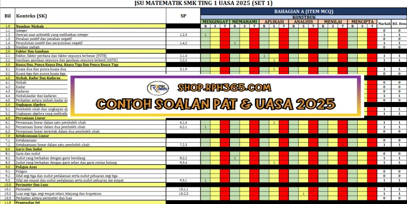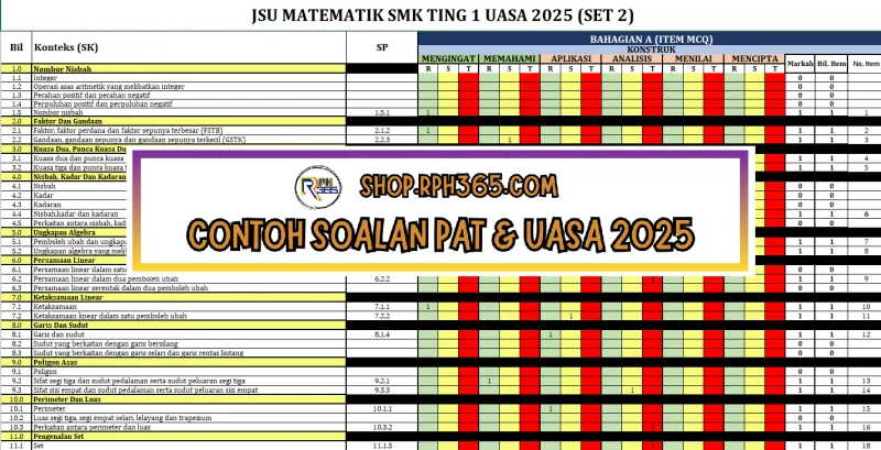 UASA 2025 Matematik SMK Ting 1 by Cgu Nizam