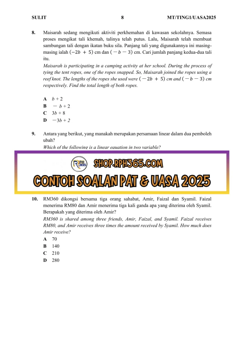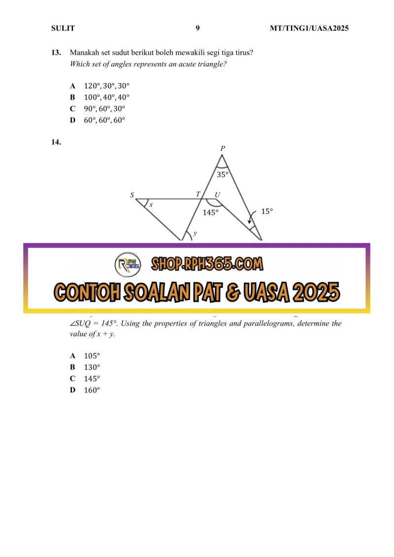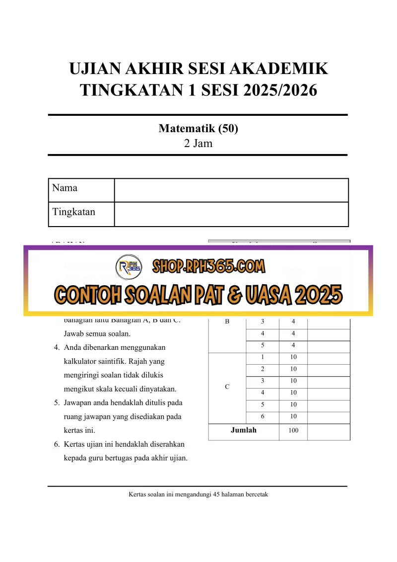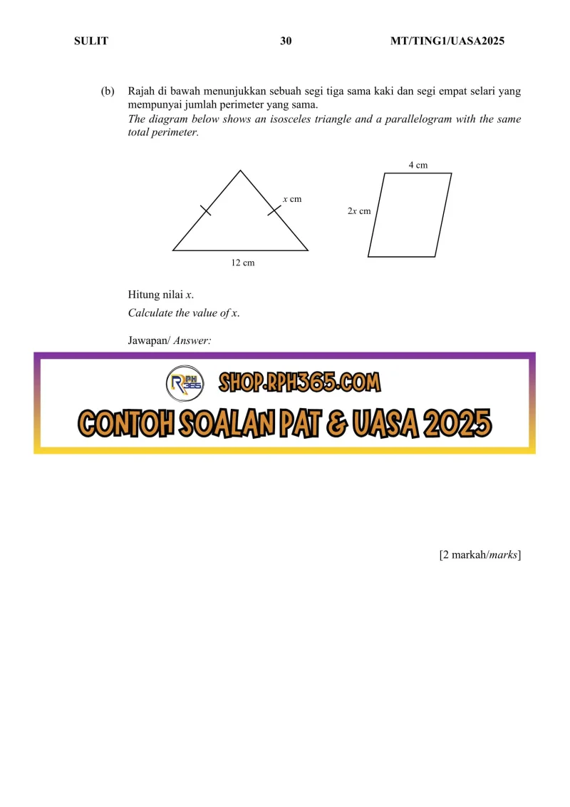 Jumlah Soalan: 2 Set Penulis: Cgu Nizam Pakej: Soalan + Jawapan + JSU Format fail: Words/PDF/Excel Bahasa: Bahasa Melayu/English