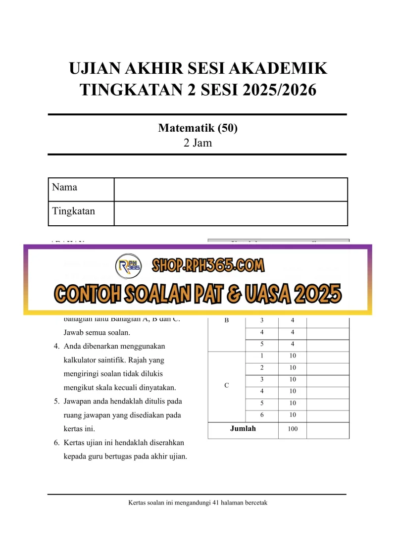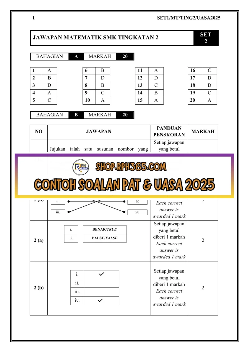 UASA 2025 Matematik SMK Tingkatan 2 by Cgu Nizam