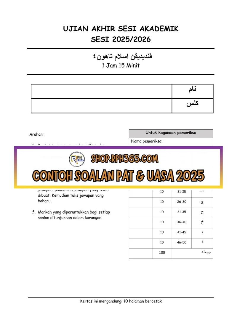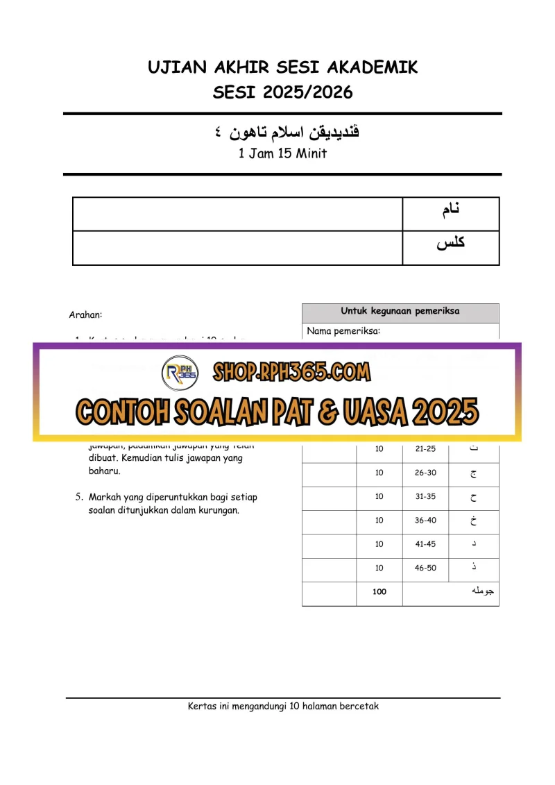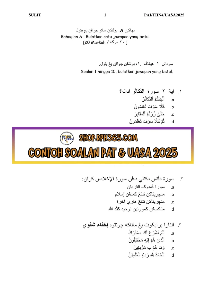 UASA 2025 Pend Islam SK Tahun 4 by Nisa Salim