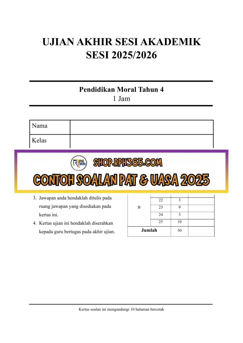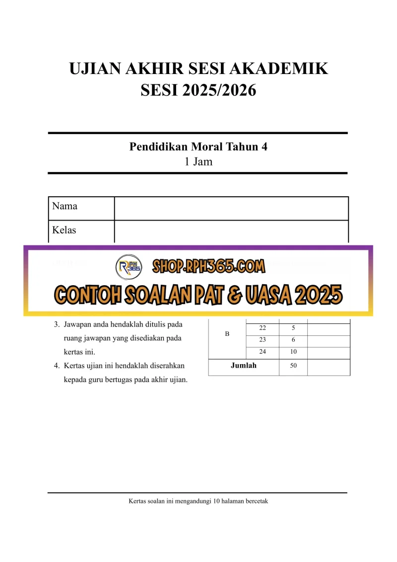 UASA 2025 Pend Moral SK Tahun 4 by Cikgu Fatimah