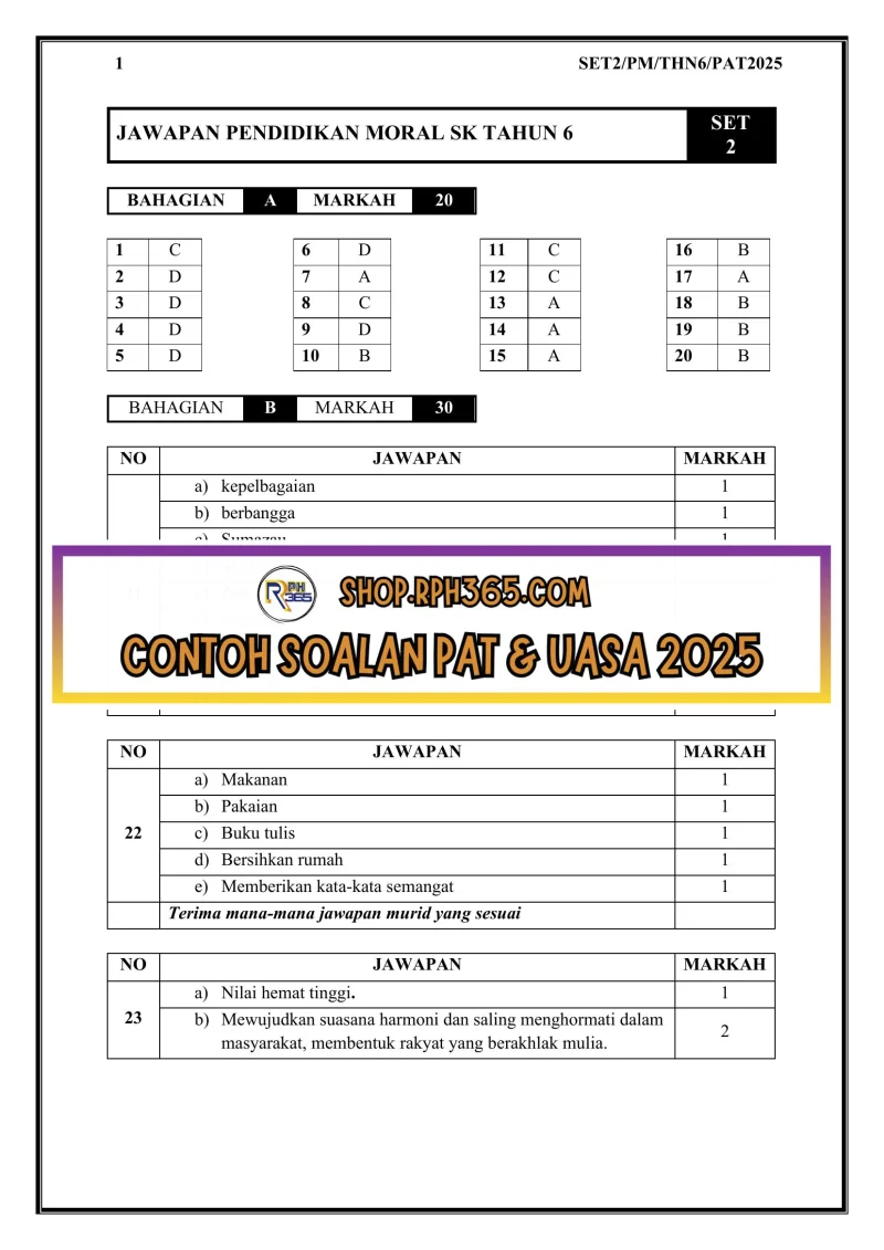 UASA 2025 Pend Moral SK Tahun 6 by Cikgu Fatimah